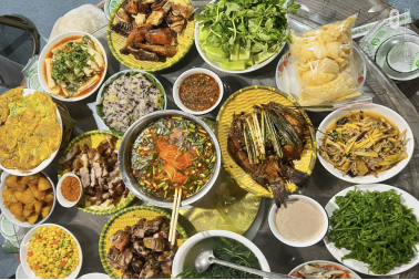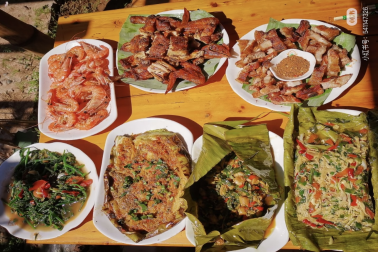 中午:去老字号曼飞龙烤鸡店,点香茅草烤鱼、菠萝饭等特色菜,配老挝冰咖啡享用。
