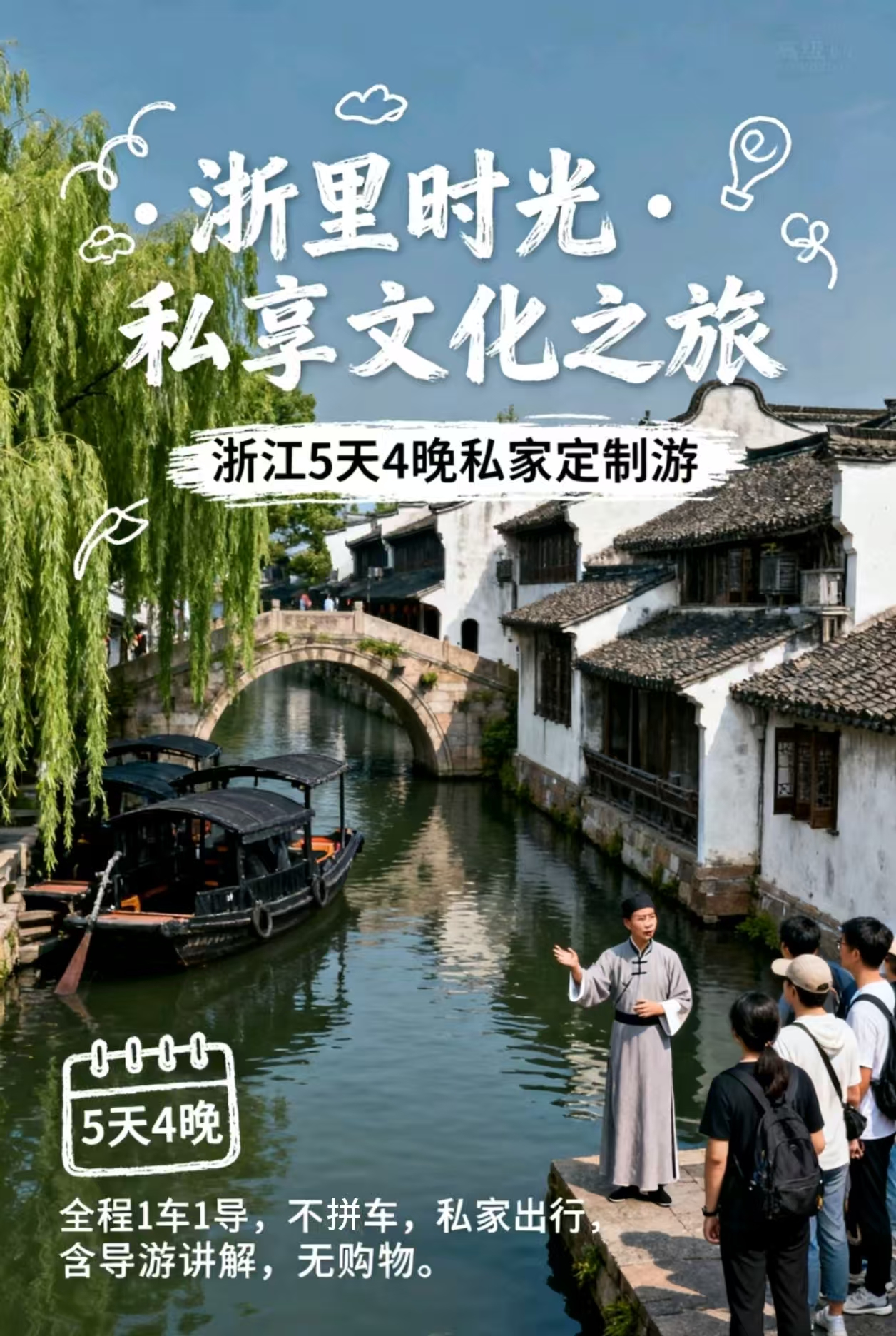 酒店早餐后,7:30驱车前往乌镇,首站踏入东栅景区,我们可以在此体验扎染DIY,亲手将棉线扎成的“莲蓬纹”浸入染缸,见证这门传承千年的草木染色技艺。随后来到 茅盾故居,让水乡的灵秀与文人的风骨在此交织。行至 逢源双桥,桥分左右两径,相传走左径“升官”、走右径“发财”,在“一步跨两省”的趣味打卡中,感受乌镇作为“吴越分界”的地理传奇。