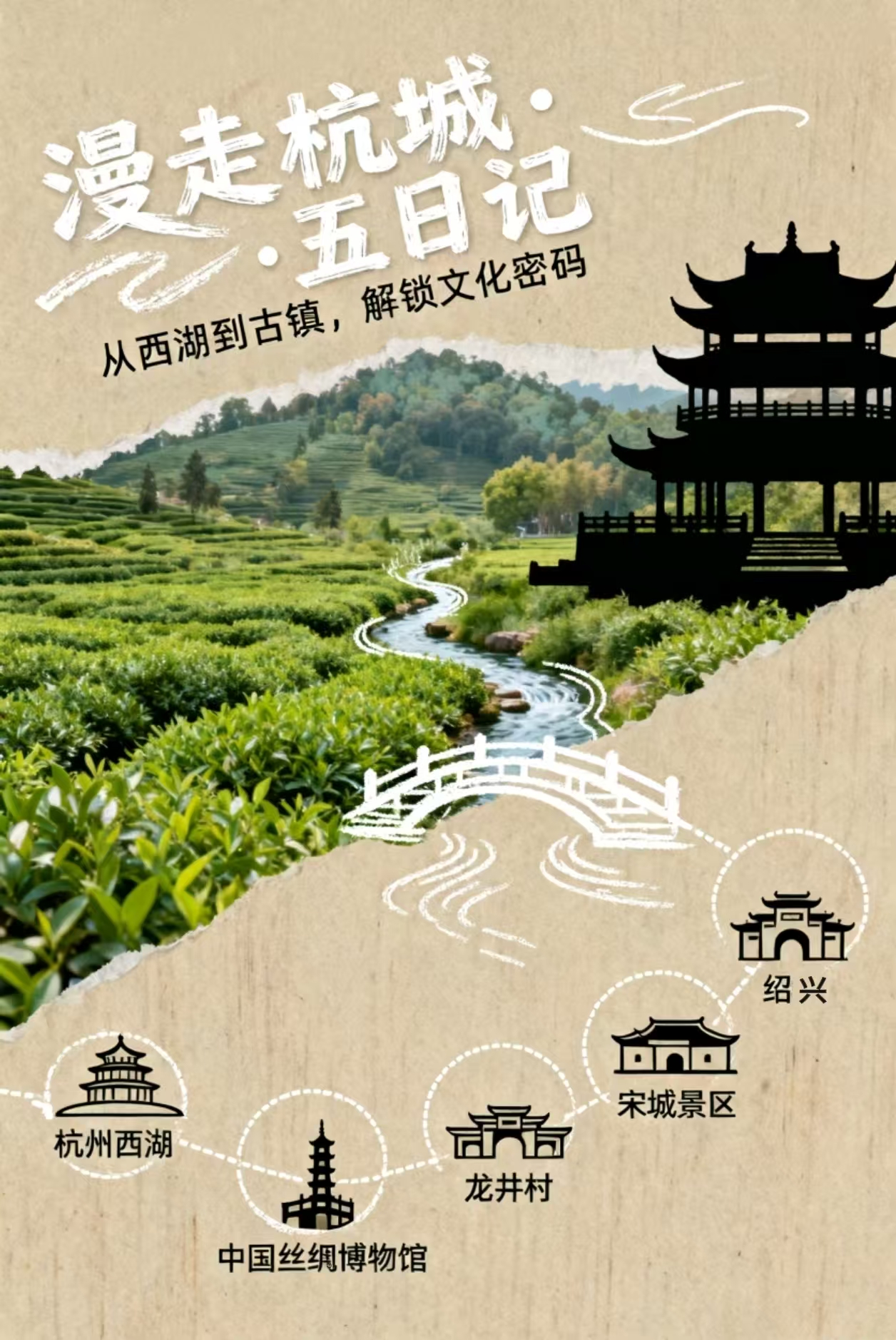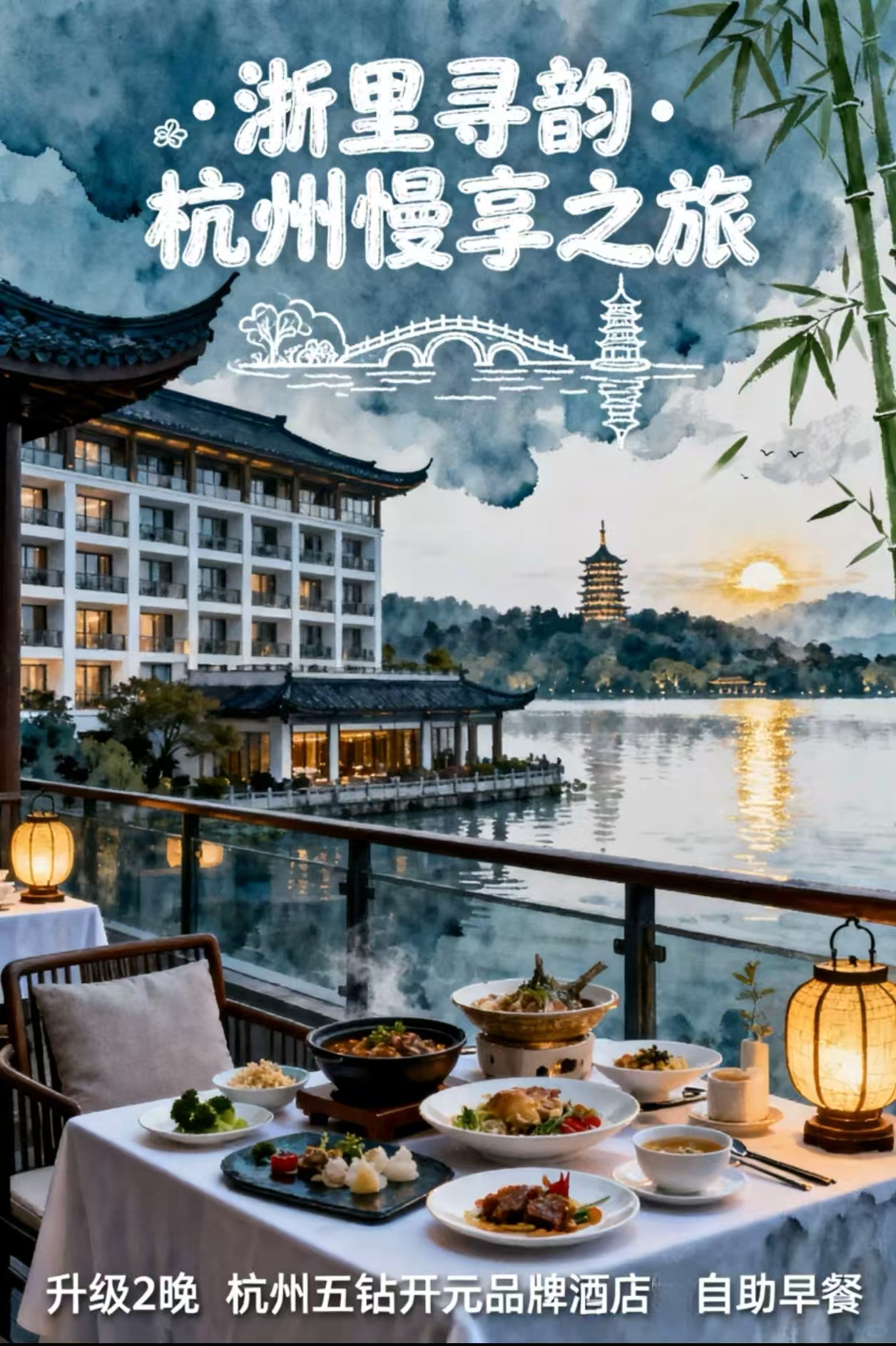 酒店早餐后8:30前往中国丝绸博物馆,博物馆外墙上流动的“丝绸纹理”建筑设计,仿佛一卷展开的古绢,静待来客触摸千年丝韵。10:45驱车前往龙井村,在茶农家围坐八仙桌,品明前龙井,学习“抖、搭、搧、捺”的炒茶手法。茶园拍照时可穿采茶服,拍出绿野仙踪的意境。午餐在龙井村老字号 “茶人村”——这家隐于茶园中的木质院落,推门可见墙上挂满的“西湖龙井炒制大赛”奖状,餐桌就摆在露天庭院,抬头便是满目茶田。