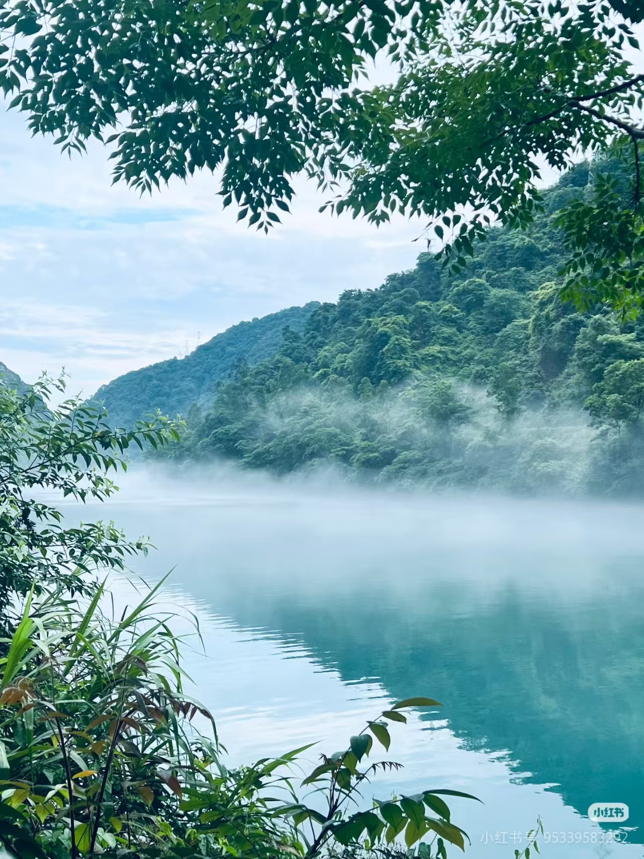 早上观东江湖中雾气,游玩龙景峡谷、游玩东江湖、潇湘风情水镇黄草。