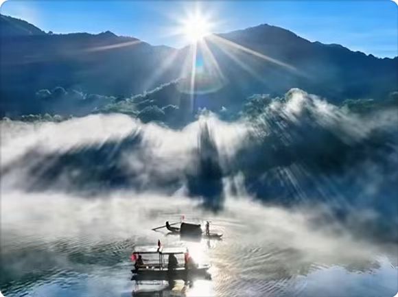 D2:清晨早起,再次邂逅东江湖的湖中雾气,此时的湖面雾气比昨日小东江的更为辽阔,仿佛给整个东江湖披上了一层银色的纱幔,泛舟其中,宛如置身于缥缈的仙境。随后前往龙景峡谷,沿着峡谷内的栈道前行,两侧是茂密的原始森林,各类珍稀植物郁郁葱葱,不时有清泉从石缝中渗出,形成一个个小巧的水潭,峡谷内负氧离子浓度极高,每一次呼吸都能感受到自然的清新与滋养。接着游览东江湖核心湖区,乘坐游船畅游湖面,湖水清澈见底,四周青山环抱,远处的岛屿星罗棋布,可在游船上尽情欣赏湖光山色,还可了解东江湖的水利文化与生态保护故事。之后前往潇湘风情水镇黄草,这座小镇依水而建,青石板路、木质民居充满了古朴的水乡韵味,被称为“江南水中镇、东江湖中花”。在小镇里可漫步街巷,品尝当地的东江鱼干、甜酒等特色小吃,也可乘坐小船穿梭于小镇的水巷之间,感受独特的水乡生活气息。中午享用黄草镇的特色中餐,菜品以湖鲜和农家菜为主,口味地道醇厚。餐后乘坐空调旅游大巴返回长沙,沿途回顾东江湖的秀丽风光,结束这趟充满自然与人文魅力的二日精品之旅。