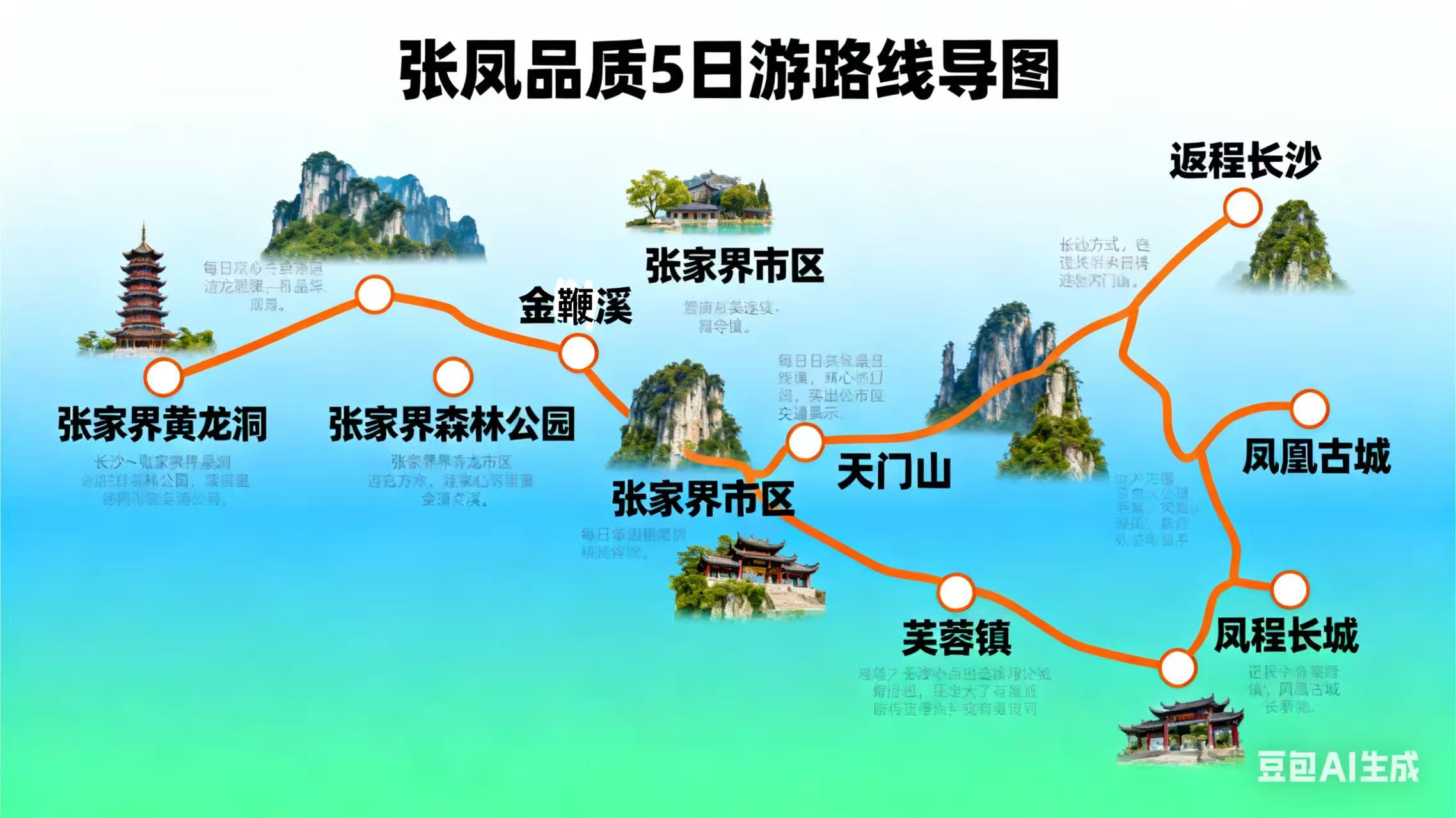 1. 景观丰富多元:涵盖张家界黄龙洞“地下魔宫”、森林公园袁家界(《阿凡达》取景地)、杨家界天然长城、十里画廊,天门山玻璃栈道、天门洞,凤凰古城沱江泛舟等自然与人文景观,一次行程尽览湘西红石峰林、溶洞奇观、古城风情。