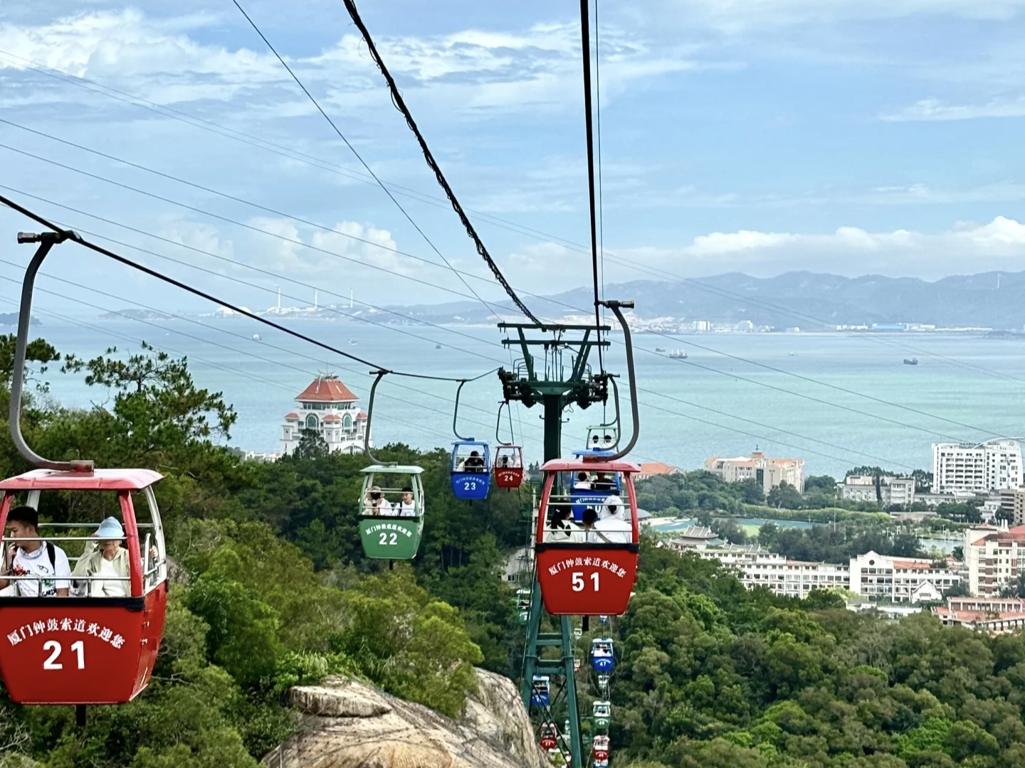酒店早餐后8:30在酒店门口集合乘车前往【钟鼓索道】参观(车程约0.2h),钟鼓索道起于万石植物园,止于钟鼓山。乘坐索道可在空 中俯瞰厦门市区美景,将鼓浪屿、厦门大学、双子塔等标志性景观尽收眼底,全 方位领略厦门独特的城市风光与山海之美,为游客带来别样的观景体验,是欣赏 厦门全貌、感受城市魅力的独特方式。