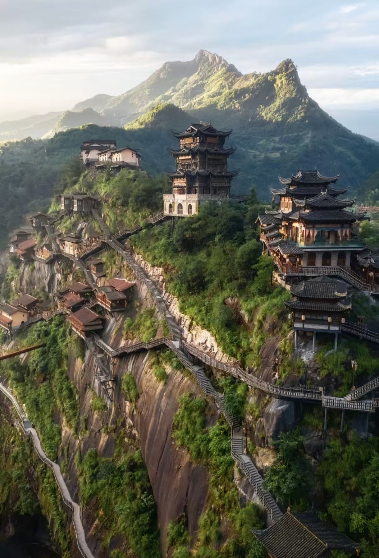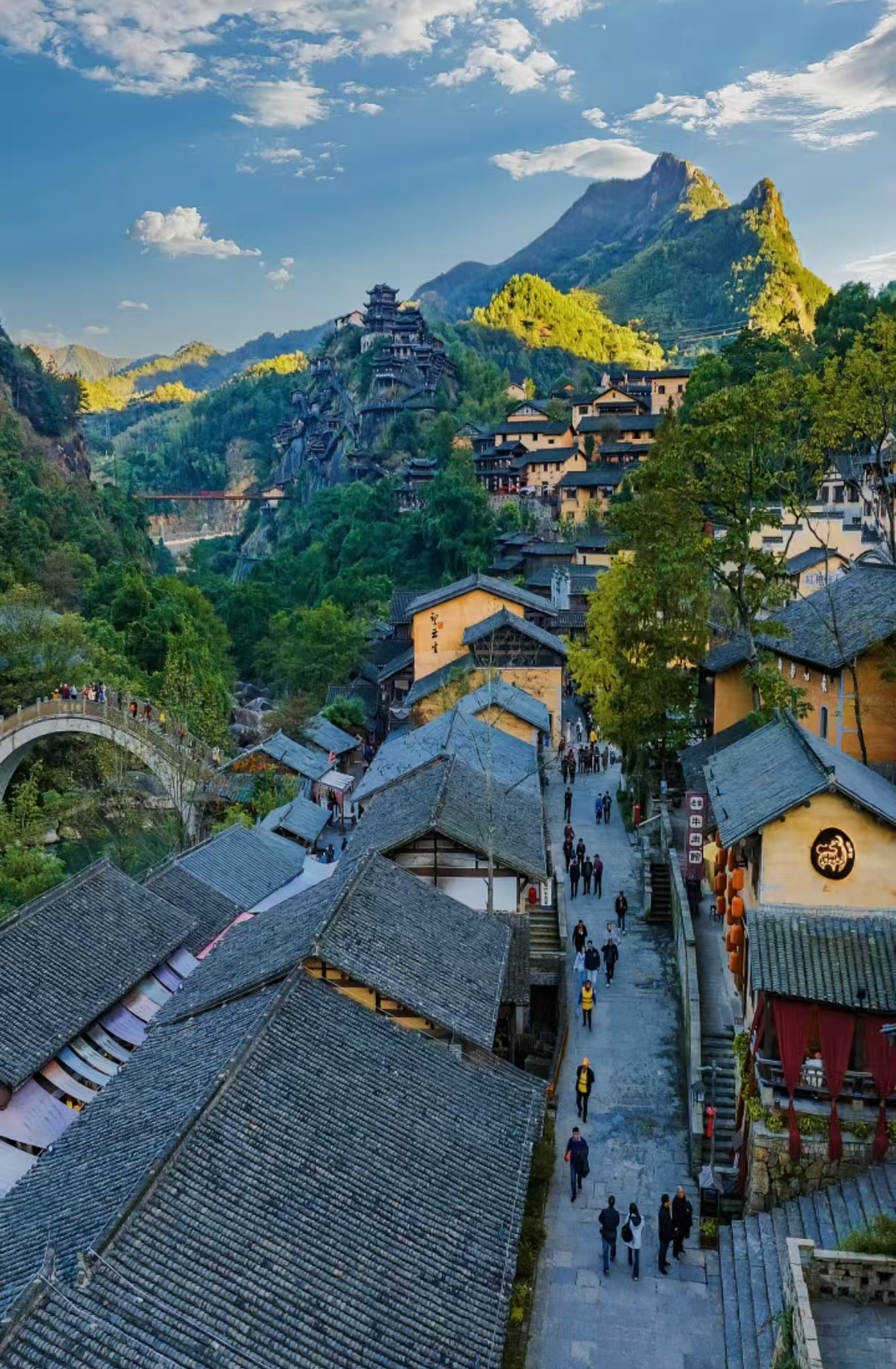午餐后乘车前往望仙谷,【望仙谷】仿若天上宫阙落人间,悬崖峭壁上的古建与自然相融,云雾缭绕时,更是如梦如幻,令人沉醉不知归路。