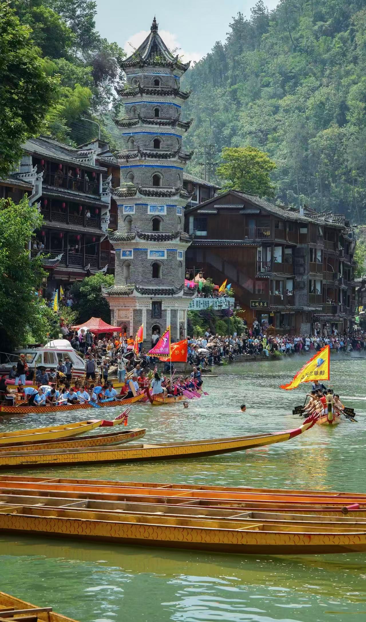下午,乘车前往【十八洞村】(费用已含),该村地处高寒山区,冬长夏短,属高山溶岩地区,平均海拨700米,生态环境优美,境内自然景观独特,被誉为“小张家界”。后乘车前往【边城茶峒】(门票已含),这里是湘黔渝三省市交界之地,是一脚踏三省的插花地,边城古建筑群立,其工艺、造型独特,土家苗寨风情别具一格。可参观百家书法园,名联坊,乘船上翠翠岛游览等。