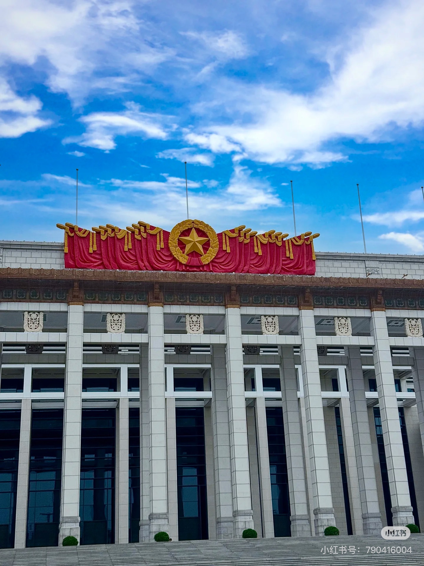 上午:九点去到人民大会堂参观,人民大会堂是中国重要的政治、文化地标,位于北京天安门广场西侧,(正对人民英雄纪念碑)是党和国家举行重大会议、外事活动的场所,也是游客感受中国政治文化的必游之地。(1h)从东门进入到达万人大礼堂可以看见穹顶星空,顶部中央镶嵌直径5米的红色五角星灯,周围环绕500盏葵花形顶灯及40瓣镏金花瓣,象征“万众一心”,灯光开启时如星河璀璨。继续走到达中央大厅这里可以看到汉白玉立柱和壁画,金色大厅的金箔装饰墙面贴覆120万张24K金箔,搭配60盏水晶吊灯,营造“金色国度”视觉效果;宴会厅中的巨幅国画《黄河颂》是王明明创作的展现了壶口瀑布磅礴气势。参观完前往全聚德烤鸭店吃午餐。