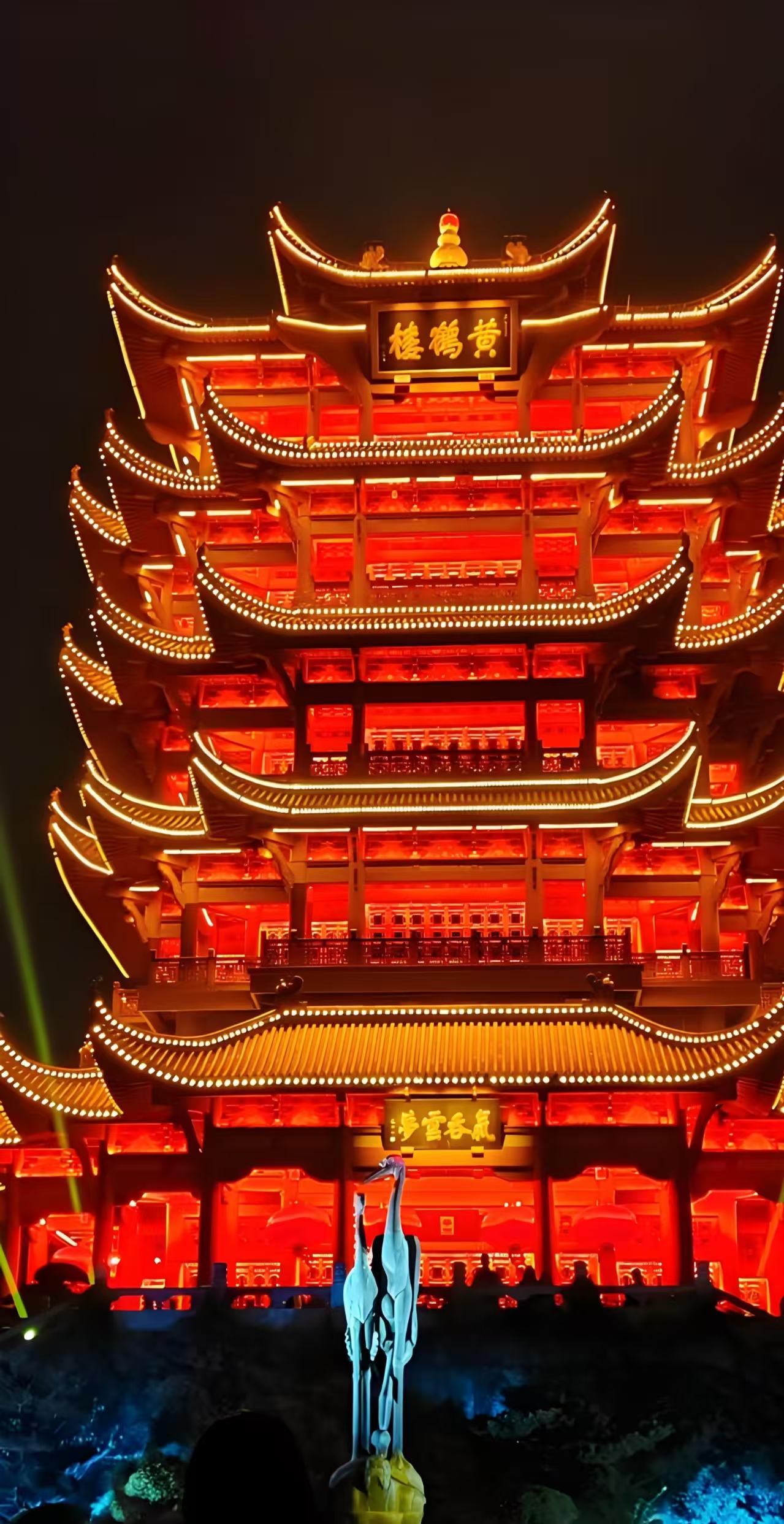 晚上:享用完晚餐之后前往黄鹤楼参观游览。这座千古名楼,飞檐斗拱,气势恢宏,承载着岁月的厚重与沧桑。登楼远眺,江城盛景尽收眼底,长江浩荡东流,城市繁华与自然交融。