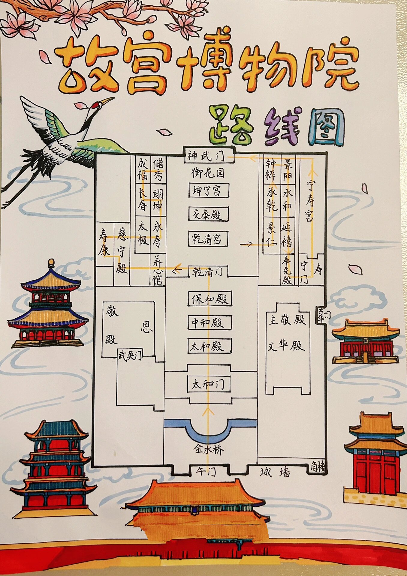 下午13:00,深度探访太和殿、乾清宫,用放大镜观察斗拱结构与龙纹彩画,结合物理知识解密故宫排水黑科技。参与建筑写生工坊研学活动,用速写定格飞檐翘角之美;非遗大师现场教学,剪出故宫瑞兽剪纸,将传统文化带回家。