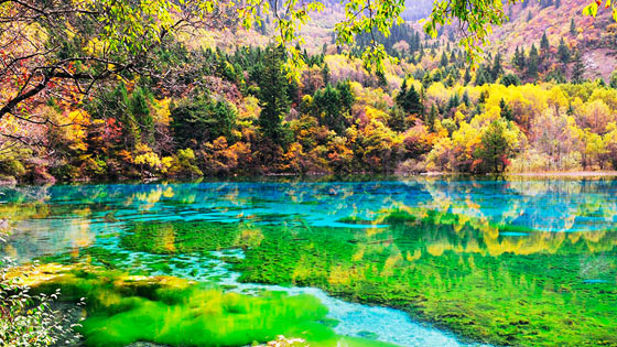 耀眼的红叶、迷醉的黄栌、苍翠的松柏……漫山色变,层林尽染,九寨沟顷刻便被秋天覆盖,迷醉瞳孔的秋意,是摄影爱好者们收到最惊艳的礼物。而那池底的海藻,也随着秋的到来,愈加的色彩浓郁,好似秋的色彩,倾倒在水中,与彩林辉映。这个秋天,每一个瞬间最值得留下。