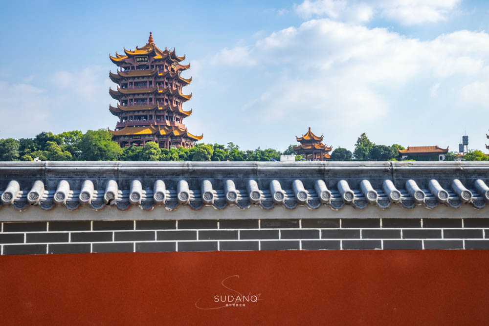13:00:乘坐大巴前往黄鹤楼红墙打卡,在地铁5号线司门口黄鹤楼站C出口旁边,可拍摄红墙青瓦与黄鹤楼同框的美景。