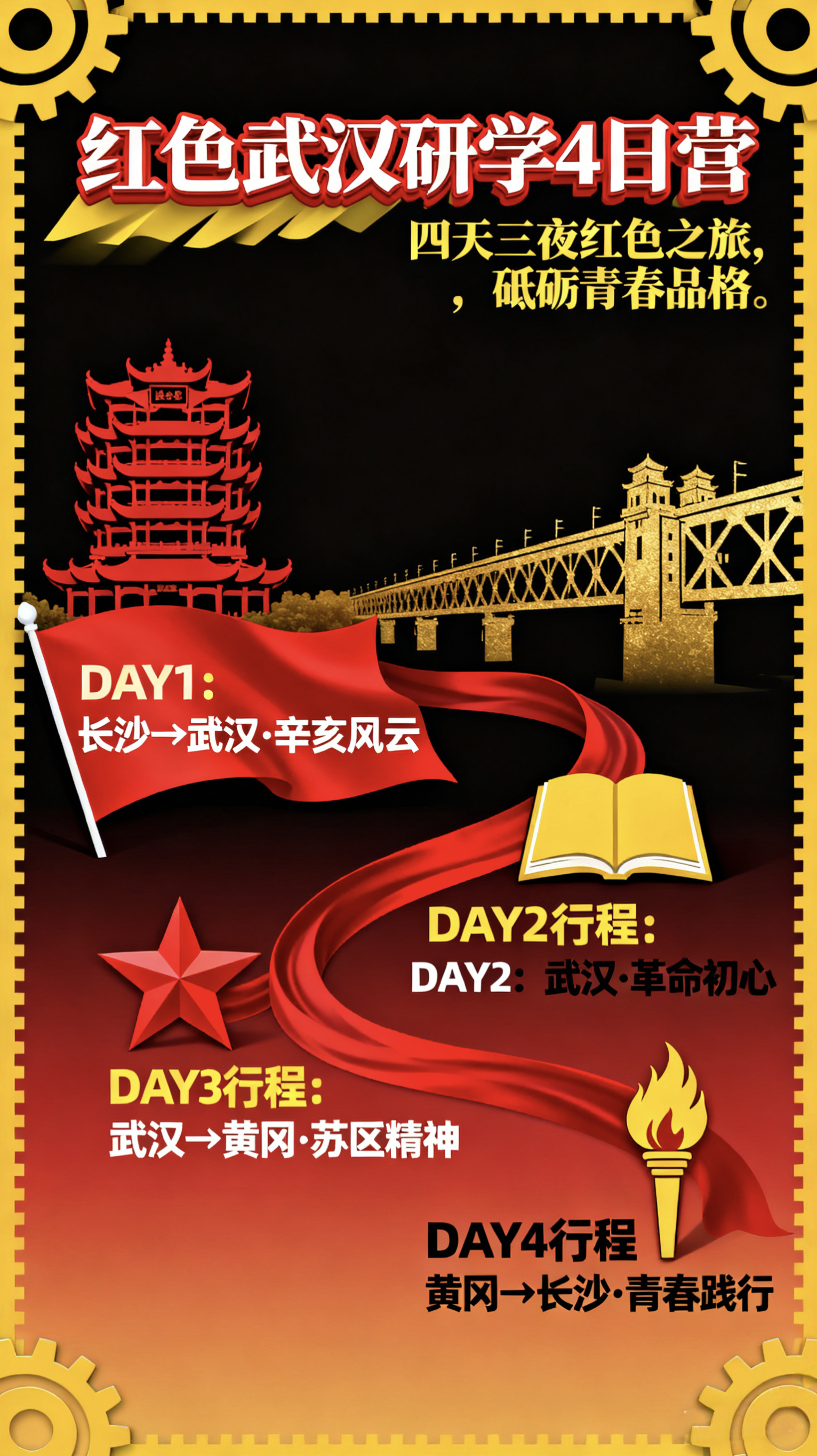 抵达黄冈后,9:00开始参观【黄麻起义和鄂豫皖苏区纪念园】(游览时间约:3.3h),向革命烈士敬献花篮,缅怀革命先烈,举行庄严的宣誓仪式,重温入团誓词。 了解重要历史事件,以及革命斗争历程,感受革命先辈的朴诚勇毅、不胜不休的精神,认识到革命胜利的来之不易。