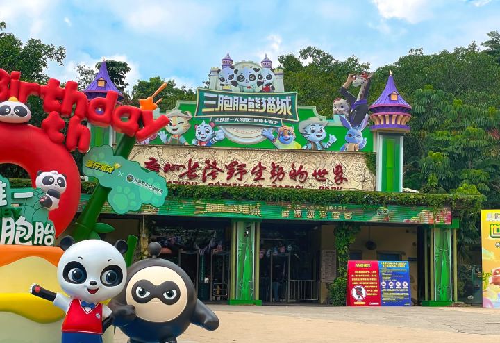 酒店用餐后,8:00驱车(行驶时间:0.7h)前往 【长隆野生动物世界·自驾区】探索(8::42-11:30)。乘坐开放式小火车穿越五大洲动物展区,发放“动物护照”,让孩子沿途收集斑马、长颈鹿、白虎等动物的贴纸印章;设置“动物模仿秀”环节,模仿看到的动物动作,全家投票选出“最佳模仿者”。家长与孩子抢答随车讲解员提出的动物知识问题(如“袋鼠的育儿袋里有什么?”),答对可获动物主题明信片。