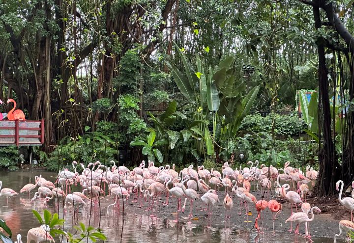 晚餐:「火烈鸟餐厅」,以火烈鸟为主题,特色菜品有火焰猪肋排、火烈鸟棉花糖,孩子可DIY动物造型水果沙拉。晚餐后前往广州长隆熊猫酒店休息