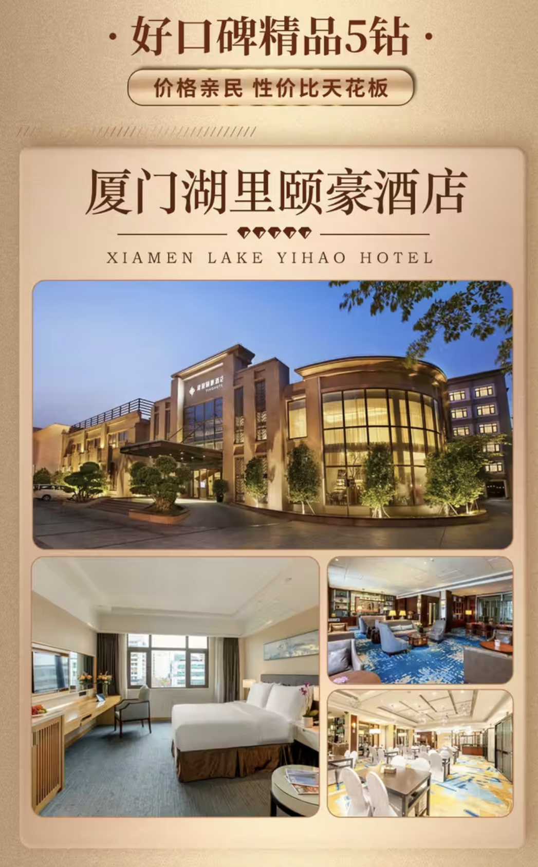 上午10:00落地厦门,专车接送入住五钻酒店(厦门湖里颐豪酒店),午餐和晚饭自理,下午自由活动。