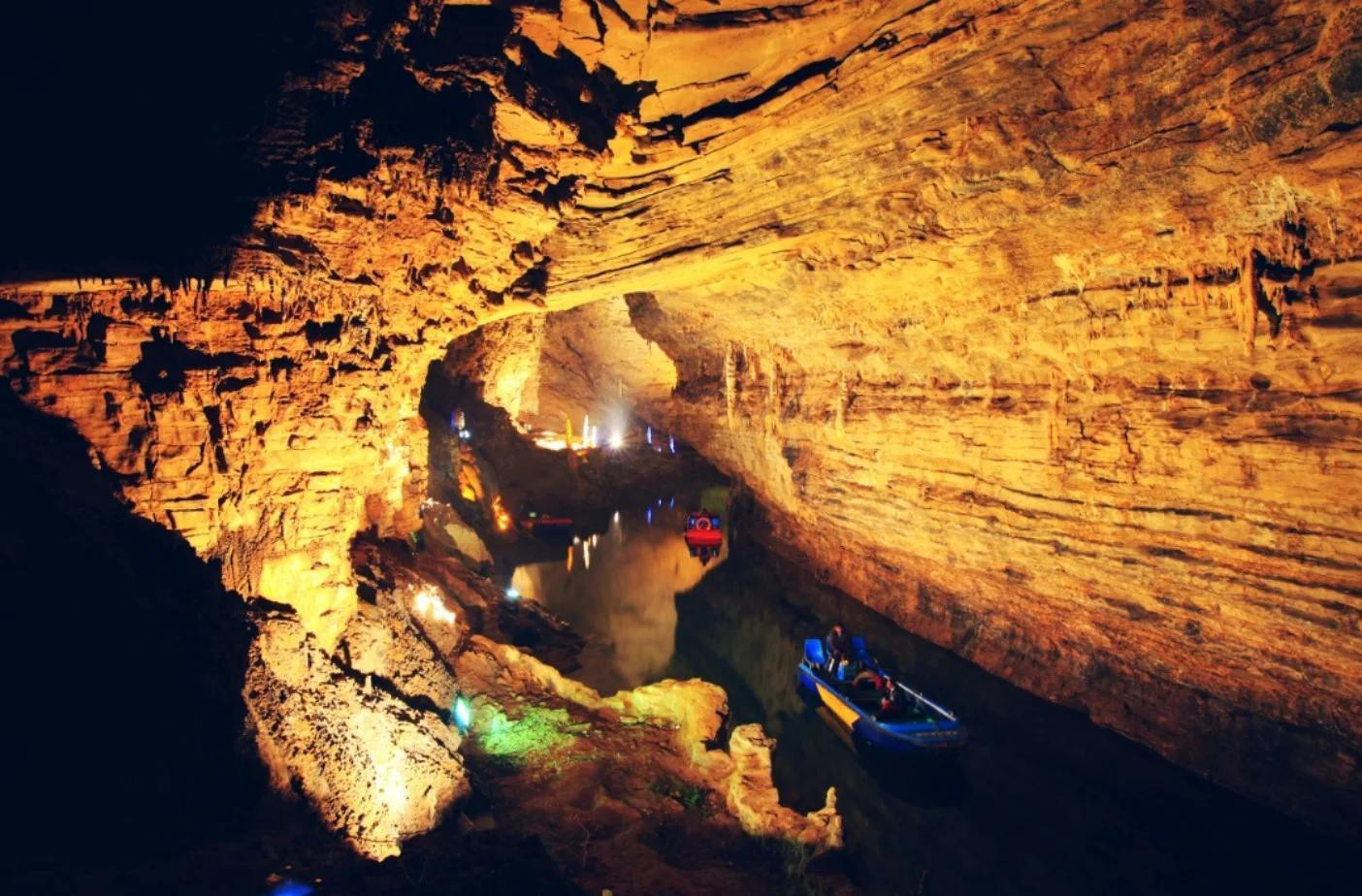 09:00:在专业导游的带领下进入黄龙洞,开启 “地下宫殿” 探秘之旅。乘船游览地下暗河 “响水河”,欣赏灯光映照下的石笋、石柱、石幔等景观,导游结合 “定海神针”讲解溶洞的溶蚀作用、钟乳石生长周期等地质知识。设置 “溶洞小侦探” 任务:让孩子观察记录洞内 3 种不同形态的碳酸钙沉积物,并对比地上峰林与地下溶洞的地质差异,培养观察力与逻辑思维能力。