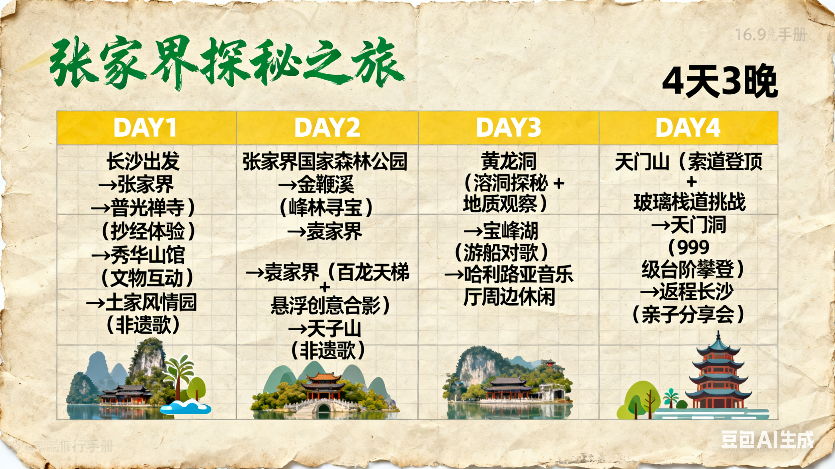14:00:乘坐旅游车返回长沙(,途中开展 “亲子游分享会”,让孩子分享本次旅行的收获,家长可补充记录,为旅程留下完整回忆。