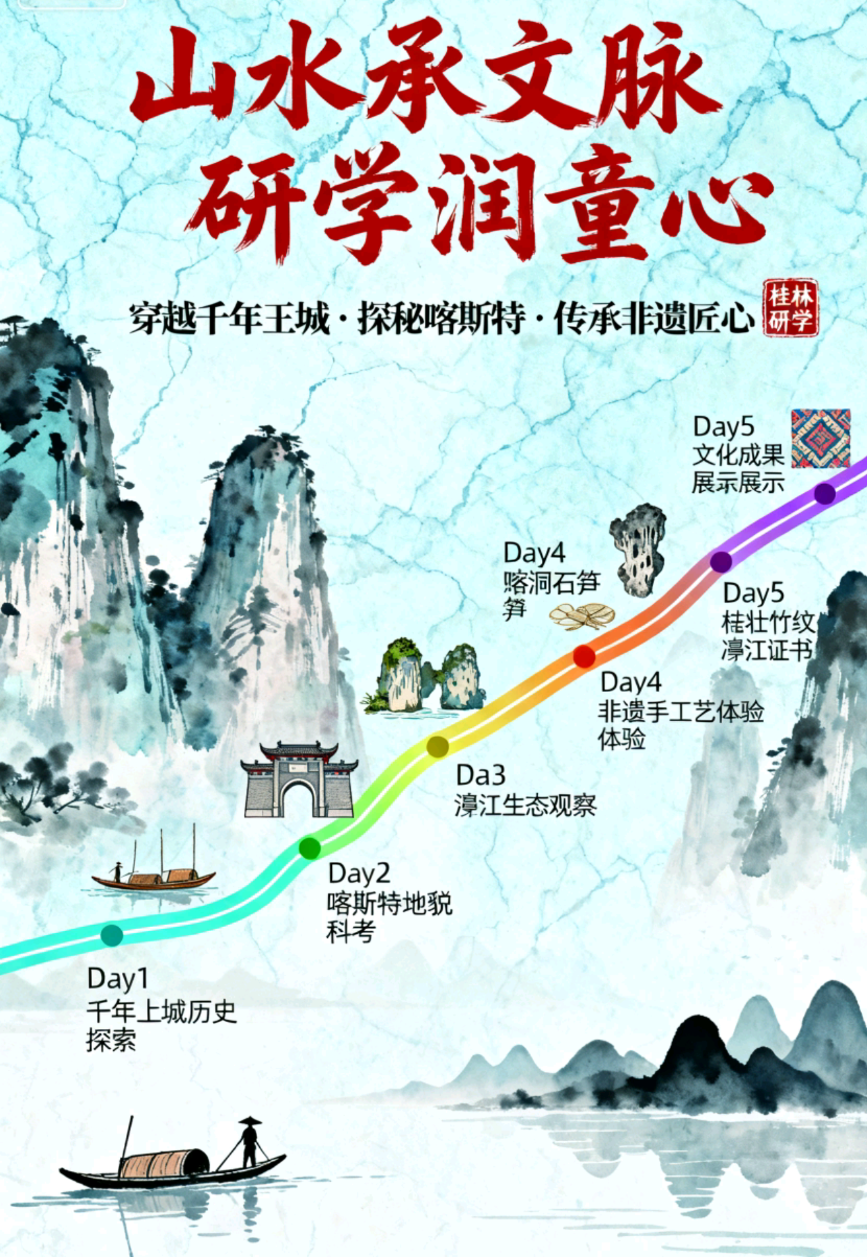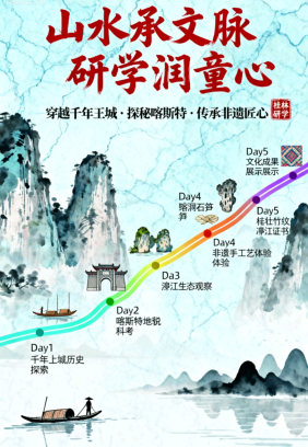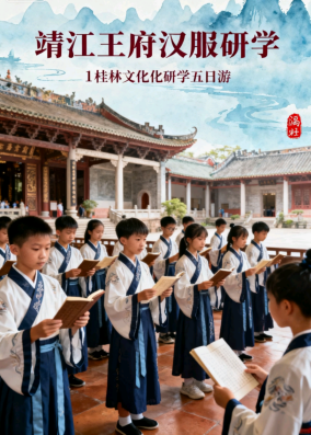 途中研学导师介绍桂林概况。抵达桂林后前往【靖江王府】研学基