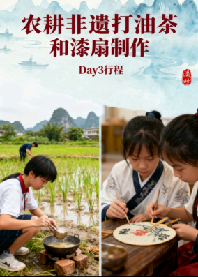 制作玉米粑等壮乡特色食品。体验漆扇工艺和石头彩绘"以漆为笔,