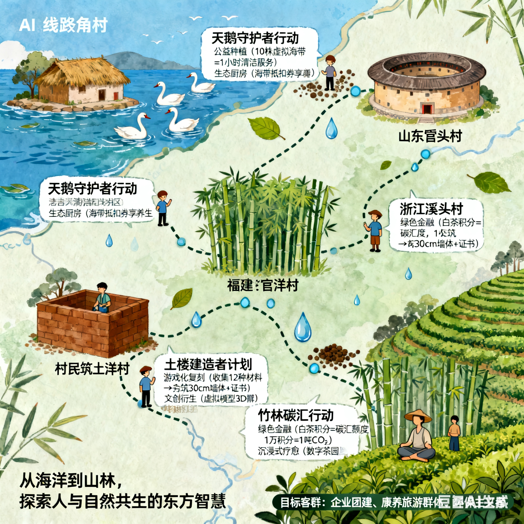 (1)云南阿者科村:1次“哈尼族星象灌溉法”AR导览,1次梯田农耕实践(插秧/收割),1次哈尼族长街宴,1次“梯田守夜人”专属夜间体验。