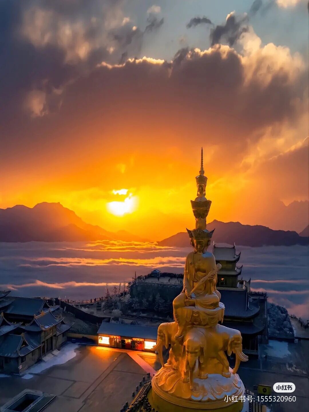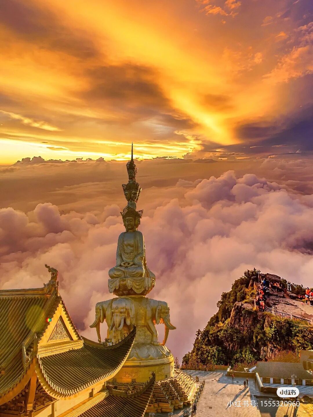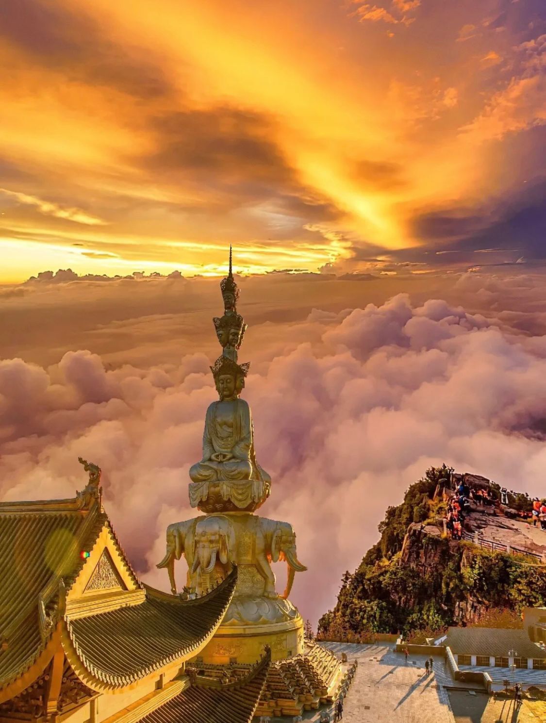 早餐后,前往峨眉山。【峨眉山-金顶】乘坐观光车(费用90元自理,上行索道80/下行索道40需自理)至雷洞坪,徒步至接引殿。峨眉金顶是以一尊48米高的十方普贤铜像为中心,由耀日的金殿、雄浑的铜殿、灼灼的银殿和洁白的朝圣大道组成的新金顶。金顶为峨眉山游程的最高峰,其海拔为3077米。顶上是个小平原,原有铜殿一座,在太阳的照射下,光彩夺目,故而得名金顶。登上金顶,人们顿觉万象排空,气势磅礴,惊叹天地之奇妙。在峨眉山金顶,还可能欣赏峨眉的四大奇景:日出、云海、佛光、圣灯。