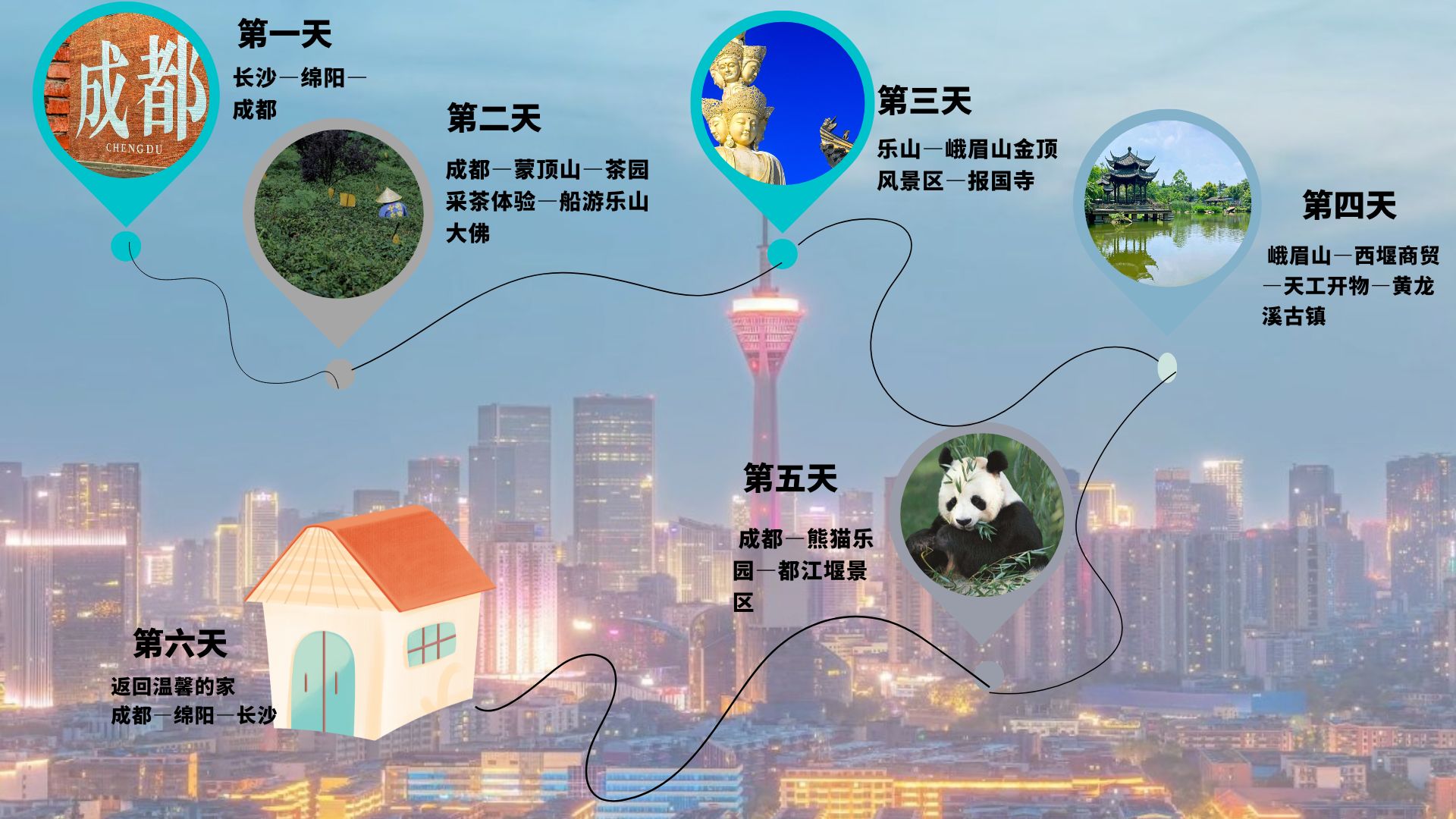 1、交通:长沙/成都往返经济舱机票,含机建燃油费;当地空调旅游大巴