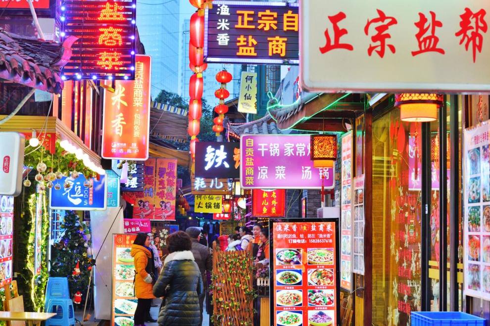 游览后前往独具文化特色的美食一条街-【香香巷】,香香巷是一条主打川西美食的街道,很窄,但是两边餐饮店很密集,一家接着一家,大大小小的招牌一到晚上就亮起了灯,整条街几百米的距离,里面涵盖了各式美食,自由享用晚餐后返回酒店休息。