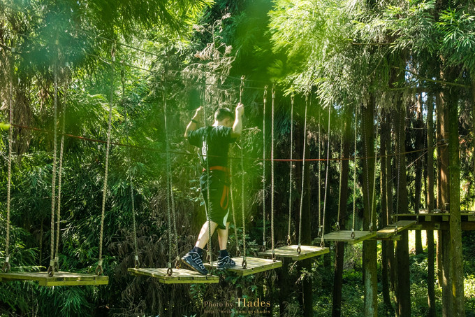 游览后前往【飞越丛林】。飞越丛林 通过树木将各种各样的障碍环节将连成一条线路,需要通过悬空桥梁、网道、步道、木桶、泰山秋千、飞狐索道和其他趣味环节等方式进行树木间的探险。 通过爬、滑、游、跨、跳、飞等动作越过所有障碍,到达终点。在整个运动中,汇集了高空、速度、力量、毅力等户外探险所必备的元素,为参与者提供了感官上的刺激。