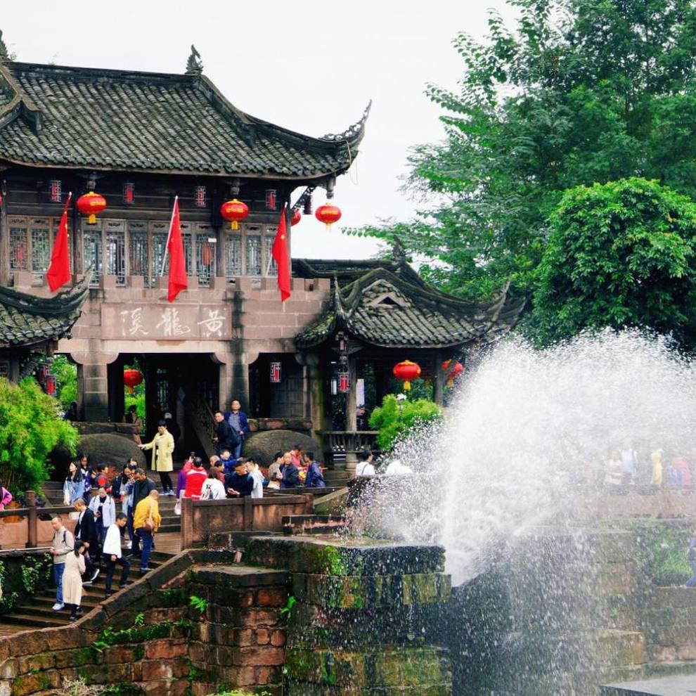 乘车前往【黄龙溪古镇】,并在古镇指定餐厅享用古镇中餐,稍作休息来一场湿身大作战。黄龙溪古镇 中国的“好莱坞“,天府第一名镇。古镇中贯穿古街的溪流穿街而下,时而湍急,时而舒缓,炎炎夏日里的戏水区更是消暑好去处,耍水的人们赤膊上阵,与水龙共舞,激情上演极具川西特色的“泼水节”。