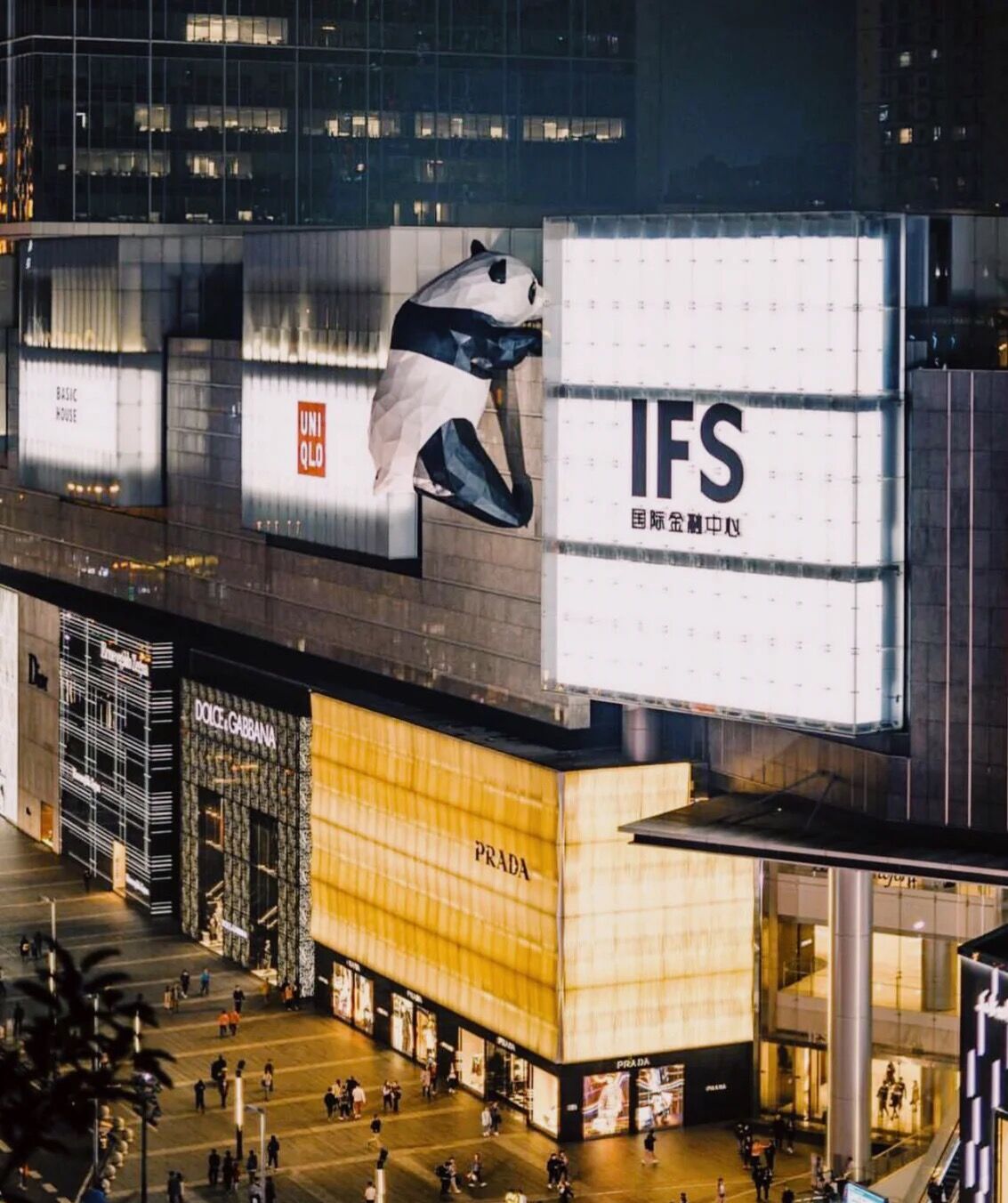 成都最火最网红的,莫过于 【TS~熊猫爬墙”】,了,独特的设计思路,让一个肥肥大大的大熊猫一半身体挂在商场的外边,一半身体爬上商场的花台,基本上你每天都能看到露天花台上排着队的人跟熊猫的大头拍照,然后商场旁边的步行街上一群人拿着相机对着熊猫的屁股拍照。【成都远洋太古里】坐落成都中心地,紧接春熙路地铁站,尽享优越交通和人流优势,比邻的千年古刹大慈寺更为其增添独特的历史和文化韵味。【方所】位于太古里地下一隅,与其说是一家书店,不如说它是一种装进文艺里的生活。