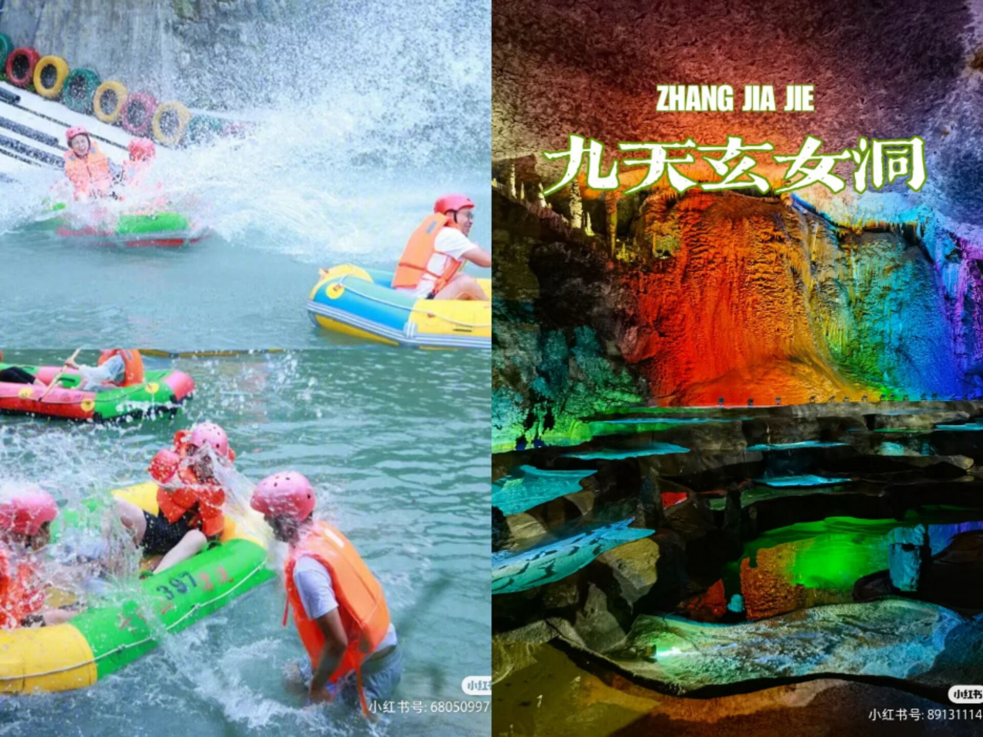 早餐后乘车前往前往【九天玄女洞】--“滴石铸玄女,暗河镂九天”。首先由专人带领一起“竹竿舞”,领略土家风情、后游览“亚洲第一洞”九天洞,面积250多万平方米,相当于400个标准足球场大小,被亿万游客誉为“世界奇迹”、“亚洲最大、世界最奇”、“溶洞女王”。后游览【茅岩河平湖游】,茅岩河是一幅多彩多姿、生动活泼的水国画,是一帧竞奇斗艳、婀娜多娇的青山图。然后游玩【茅岩河漂流】项目(平湖游和漂流为赠送项目,若因天气原因无法游玩漂流或自身原因不参加,费用不退),目前已成为中国最大的和最安全的旅游漂流项目,是张家界“山、水、洞”旅游精品项目中最富刺激的项目。与浪共舞,一漂难忘,驾橡皮舟沿茅岩河漂流而下,漂流水程20公里,落差66米,有惊无险的河滩共55个。结束茅岩河漂流行程后乘车返回张家界市区,入住酒店休息。
