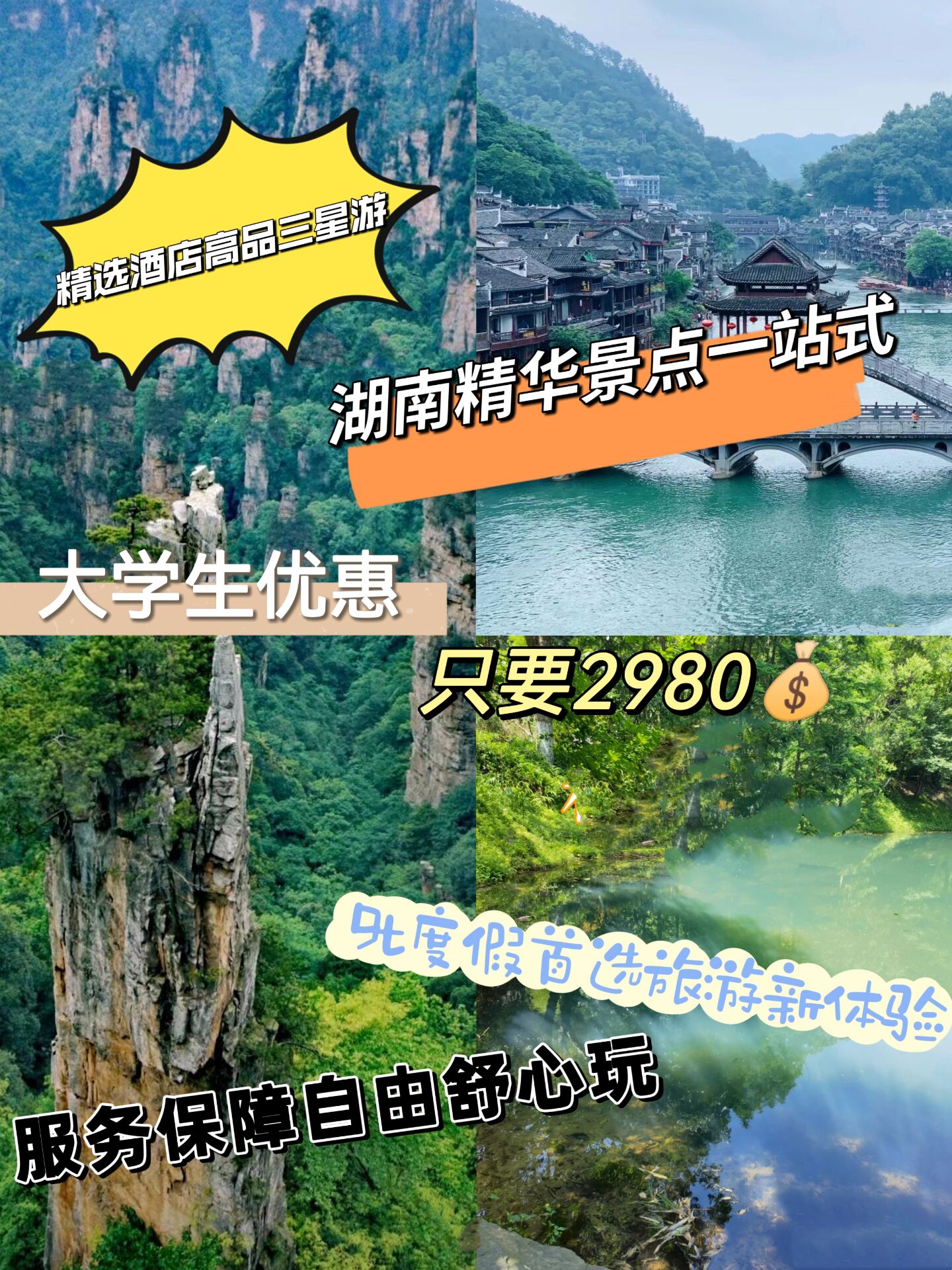 精选酒店高品三星游:全程升级携程三星酒店标准,赏桃花源古镇+游凤凰古城墨戎苗寨+沱江美食+赏老司城天门山
