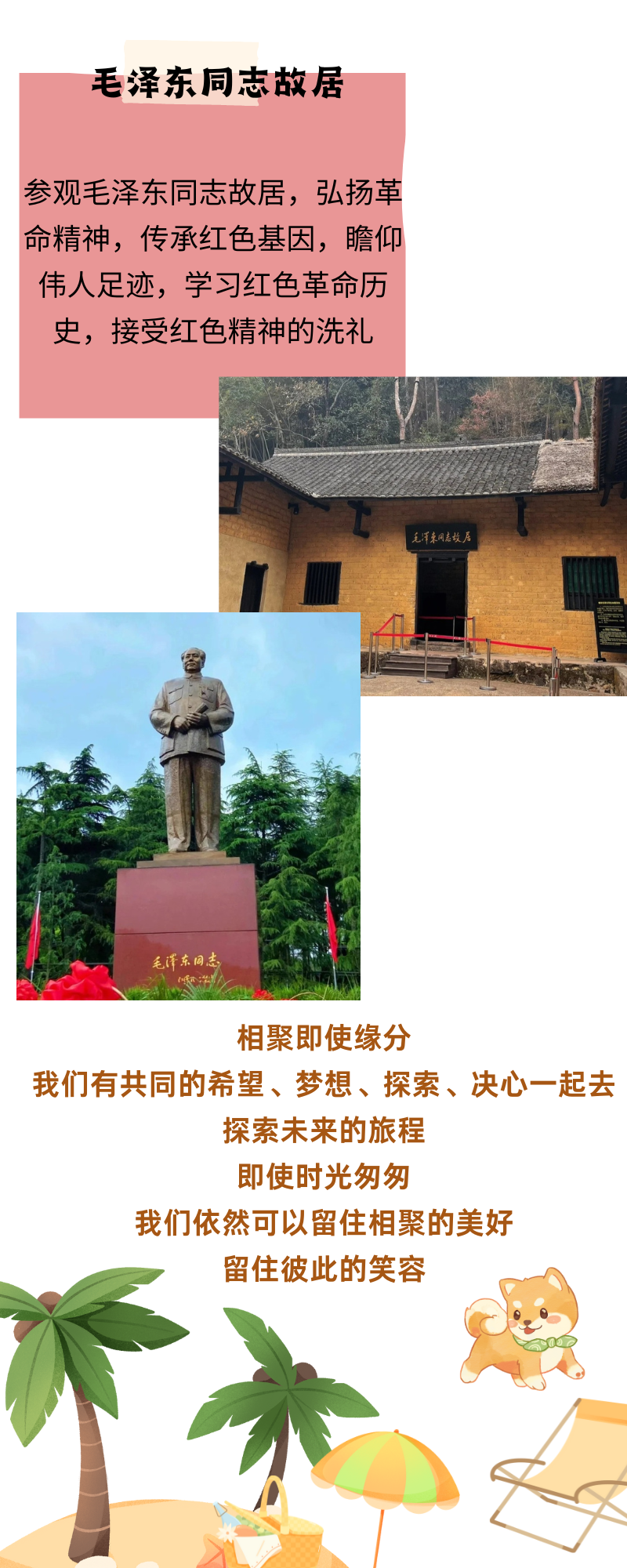 早餐后游览红太阳升起的地方——【韶山】,瞻仰一代伟人——【毛主席铜像】聆听主席一生的丰功伟绩;参观【毛泽东同志故居】;“东方红,太阳升,中国出了个毛泽东;毛泽东同志作为一个伟大的历史人物,属于中国,也属于世界”。后返回温馨家园圆满结束旅程!