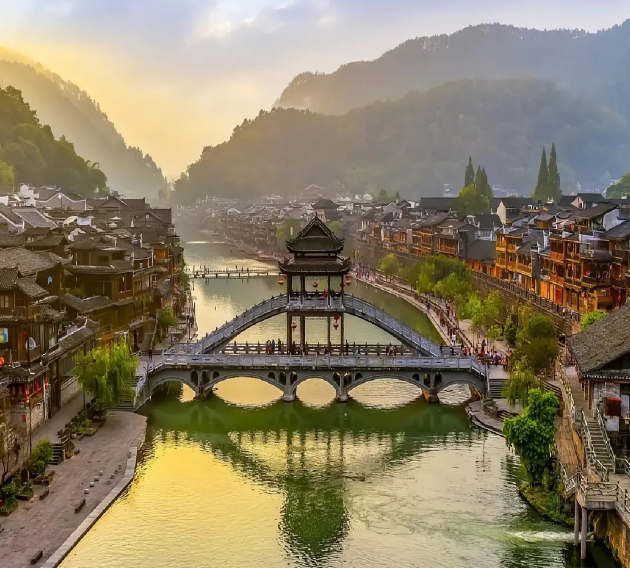 早餐后游览曾被新西兰著名作家路易艾黎称赞为中国最美丽的小城--【5A凤凰古城】感受灯火阑珊之凤凰,和烟雨凤凰,让你有一种如见海市蜃楼穿越时空之感,体验和感受凤凰古城的精华:一泓沱水绕城过、一条红红石板街、一道风雨古城墙、一座雄伟古城楼、一个美丽彩虹桥、一排小桥吊脚楼。
