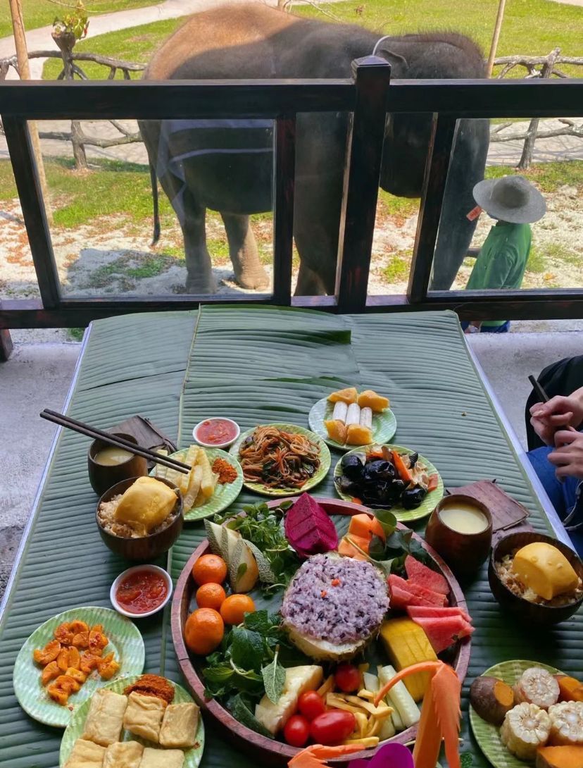 中餐,特意为您安排野象谷景区内天然、生态、健康的【象餐】。 食材选用大象平时最喜欢食用的水果和蔬菜,且均为园区内有机种植所获。新鲜有料,这才是名副其实的生态之味!