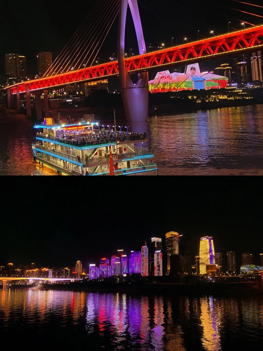 19:00 船游夜览长江(游览约45分钟)“不览夜景,枉到重庆”。山城重庆两江四岸的景色早在清代的时候即是巴渝名景之一。来重庆,不看重庆夜景,真有点感觉白来了。而看夜景最好的方式是乘坐游船,巡游两江,趁着徐徐清风,将山城容貌饱览眼中,存入心中。