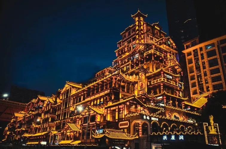 16:30 游览洪崖洞(游览2小时)洪崖洞,拥有2300多年的历史。原名洪崖门,是古重庆城门之一,以其巴渝传统建筑和民俗风貌特色而被评为国家AAAA级旅游景区,该景区以拥城市旅游景观、商务休闲景观和城市人文景观于一体而闻名,并以最具巴渝传统建筑特色的"吊脚楼"风貌为主体,依山就势,沿崖而建,让解放碑直达江滨,是游吊脚群楼、观洪崖滴翠、逛山城老街、赏巴渝文化、看两江汇流、品天下美食的好去处,也是解放碑的会客厅。