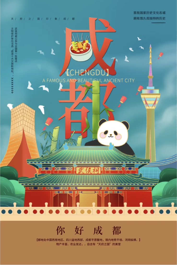 鹤鸣茶社—熊猫邮局—宽窄巷子—玉林路—空港花田—黄龙溪—夜游锦里