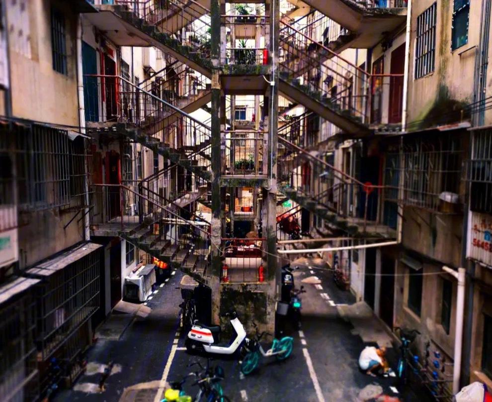 红瓦寺街18号。或许不少人还有些陌生,但在拍客心中,这里早已是一块拍照圣地---【川大鸳鸯楼】。这栋居民楼由紧邻的两座住宅构成,两楼之间设有两个交叉的“之”字楼梯,被人称为“鸳鸯楼”。