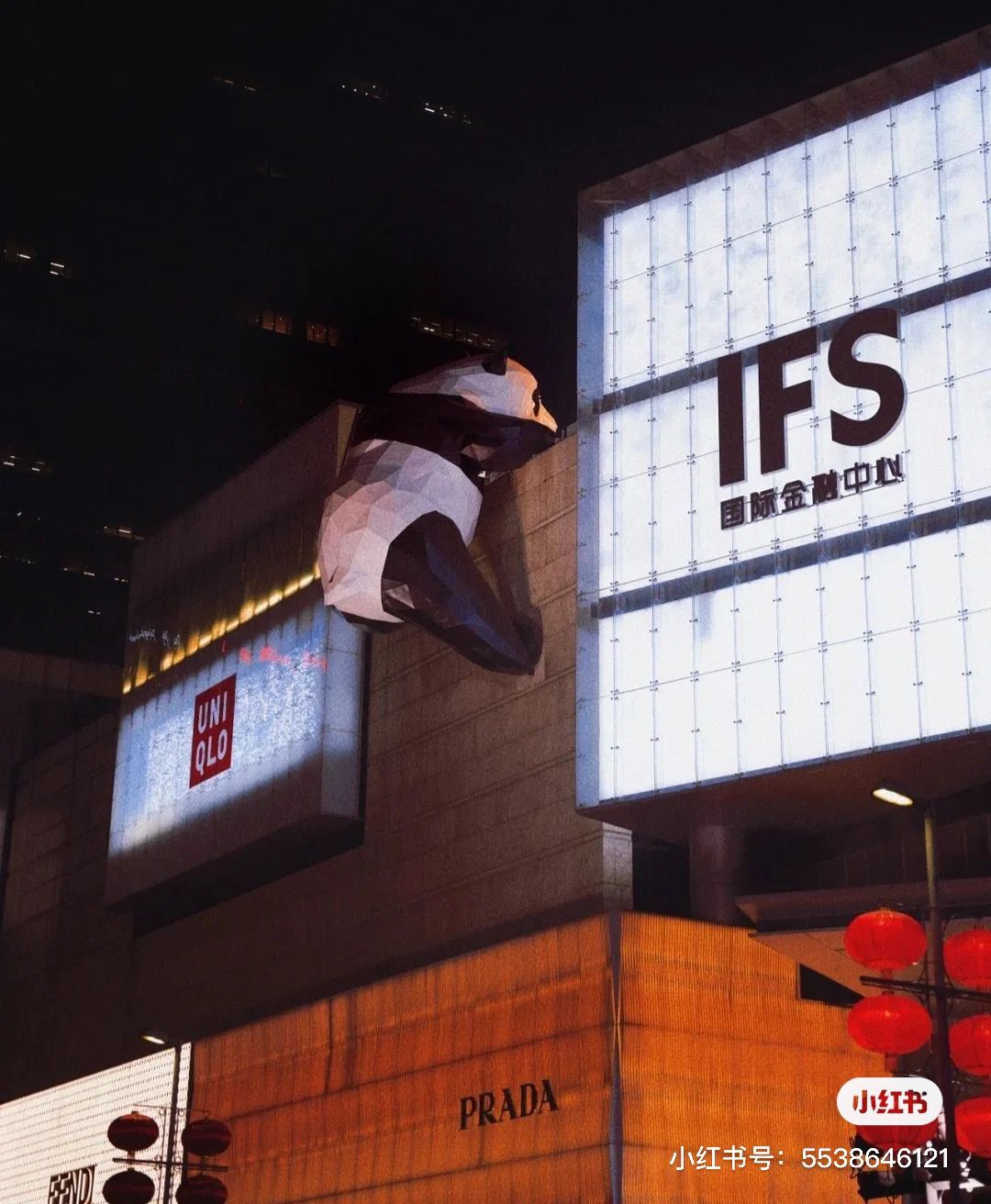 成都最火最网红的,莫过于【IFS“熊猫爬墙” 】了,独特的设计思路,让一个肥肥大大的大熊猫一半身体挂在商场的外边,一半身体爬上商场的花台,基本上你每天都能看到露天花台上排着队的人跟熊猫的大头拍照,然后商场旁边的步行街上一群人拿着相机对着熊猫的屁股拍照。 【成都远洋太古里】坐落成都中心 地带,紧接春熙路地铁站,尽享优越交通和人流优势,比邻的千年古刹大慈寺更为其增添独特的历史和文化韵味。【方所】位于太古里地下一隅,与其说是一家书店,不如说它进文艺里的生活。