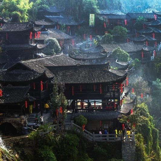 早餐后前往宋祖英的家乡、大湘西地区最大、最美丽、民俗风情最浓郁的国家AAA景区,被誉为“千里苗疆第一寨”——【墨戎苗寨】(门票已赠送)。对了歌、喝了酒、击完鼓,才能走进这个原始神秘的古苗寨,“竿子营”营房、烽火台流淌着历史的沧桑、苗族人的家国情怀、民族大义;去茶农家里品鉴最好的“有机茶”——“古丈毛尖”;打上了08奥运开幕式的墨戎“四方鼓舞”,会让您感受到战神蚩尤出征的震撼,秋实丰收的喜悦;精彩绝伦的各种苗族手工纺织、锻制技艺让人叹为观止;神秘的湘西巫术更会让您瞠目结舌、目瞪口呆……跳完竹竿摆手舞,就可以去体验苗家寨子里待客的最高礼遇——“长龙宴”了,那些热情的姑娘,一定要您对上苗家山歌之后,才会奉上筷子,和苗家阿妹一起载歌载舞,真正感受到苗族的人的真、善、美。