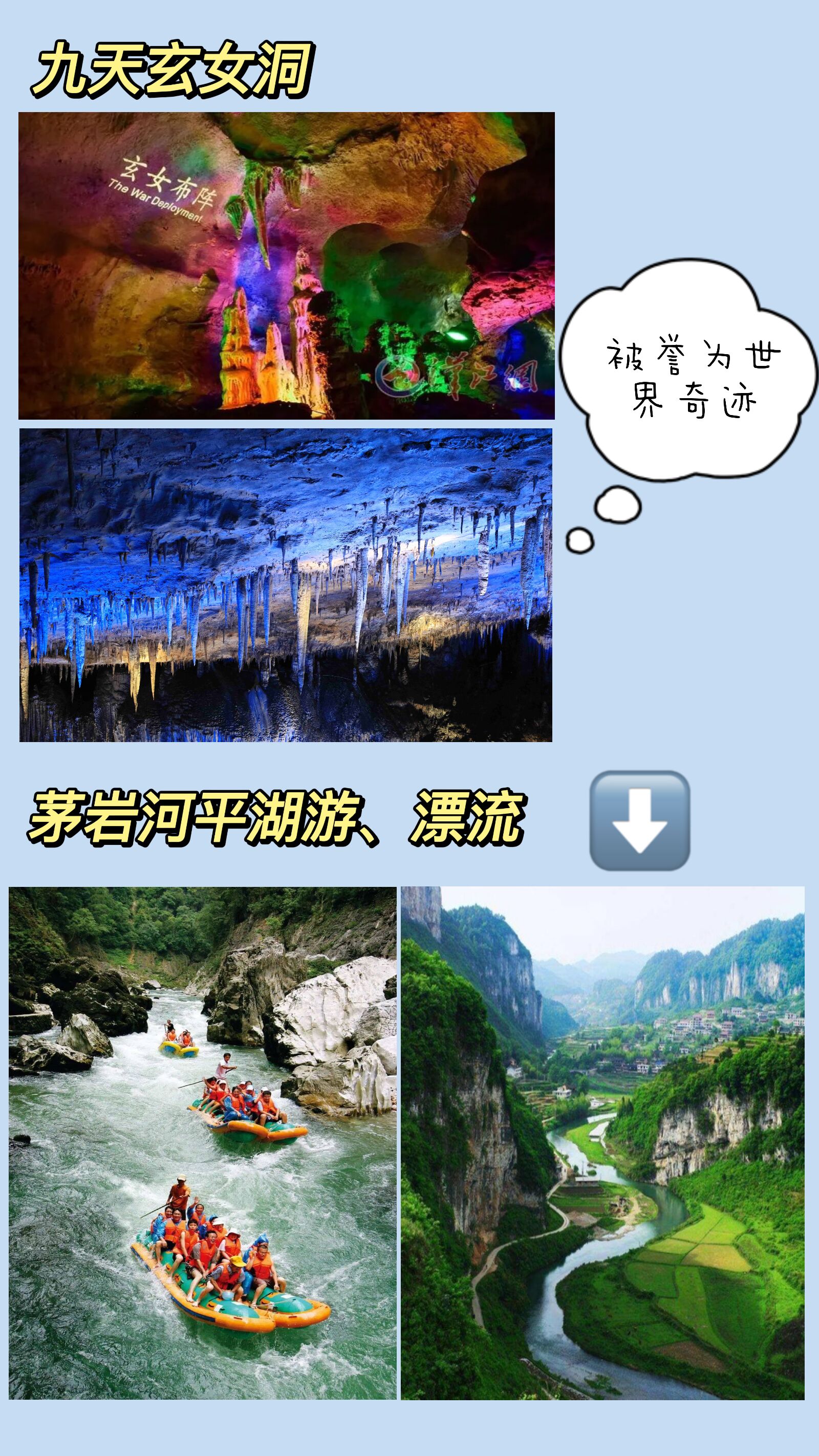 餐后乘车前往前往【九天玄女洞】--“滴石铸玄女,暗河镂九天”。首先由专人带领一起“竹竿舞”,领略土家风情、后游览“亚洲第一洞”九天洞,面积250多万平方米,相当于400个标准足球场大小,被亿万游客誉为“世界奇迹”、“亚洲最大、世界最奇”、“溶洞女王”。后游览【茅岩河平湖游】,茅岩河是一幅多彩多姿、生动活泼的水国画,是一帧竞奇斗艳、婀娜多娇的青山图。然后游玩【茅岩河漂流】项目(平湖游和漂流为赠送项目,若因天气原因无法游玩漂流或自身原因不参加,费用不退),目前已成为中国最大的和最安全的旅游漂流项目,是张家界“山、水、洞”旅游精品项目中最富刺激的项目。与浪共舞,一漂难忘,驾橡皮舟沿茅岩河漂流而下,漂流水程20公里,落差66米,有惊无险的河滩共55个。结束茅岩河漂流行程后乘车返回张家界市区,入住酒店休息