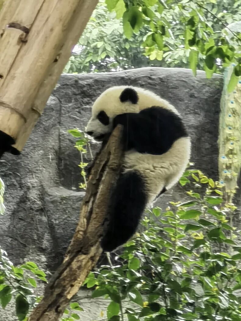 下午推荐前往成都最火最网红的【IFS“熊猫爬墙”】,独特的设计思路,让一个肥肥大大的大熊猫一半身体挂在商场的外边,一半身体爬上商场的花台,基本上你每天都能看到露天花台上排着队的人跟熊猫的大头拍照,然后商场旁边的步行街上一群人拿着相机对着熊猫的屁股拍照。