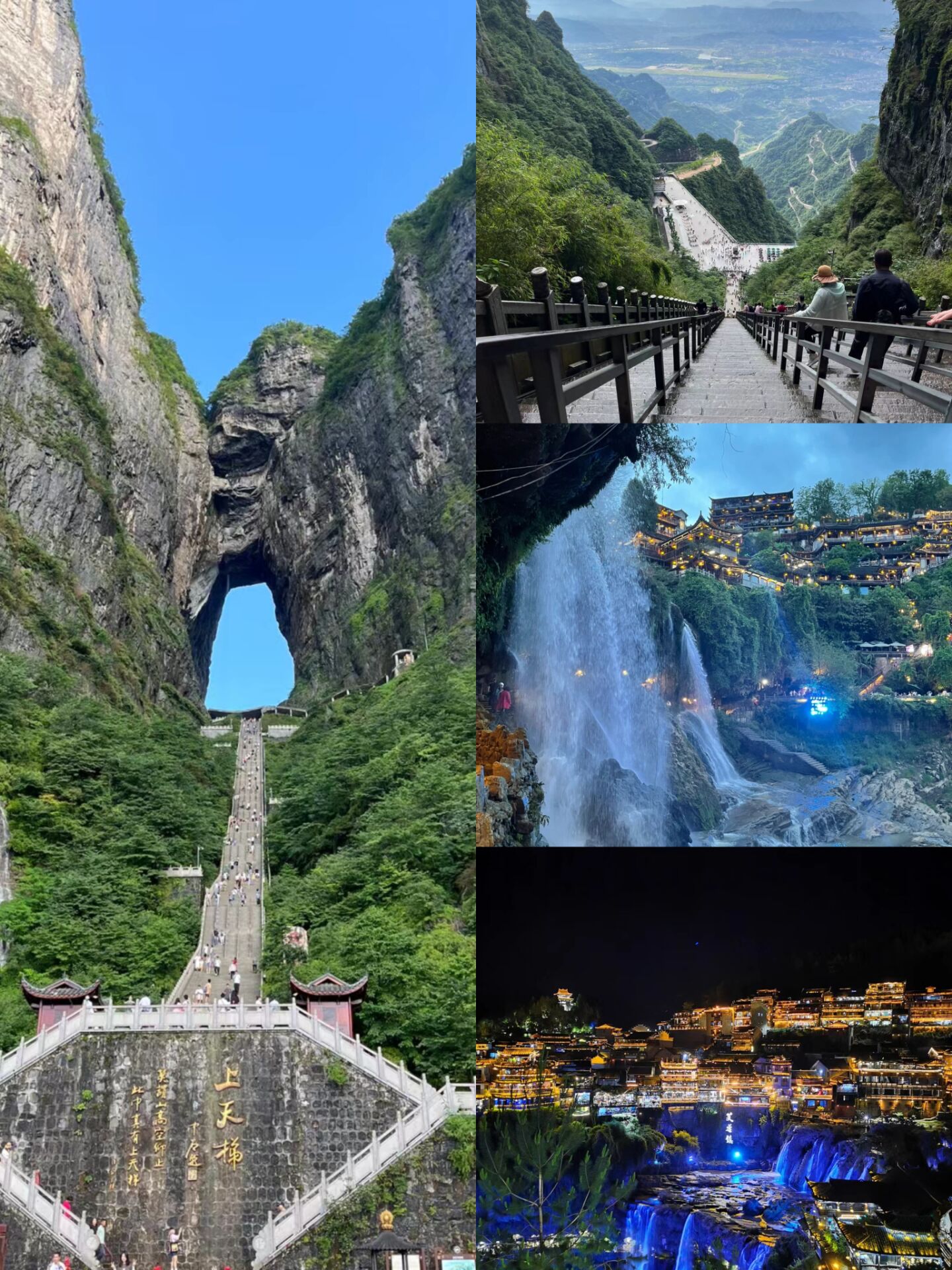【杨家界景区】游览天然长城绝美峰墙、乌龙寨,乌龙寨原名叫“黑龙寨”,以前是土匪居住的地方,地处偏远、关隘险绝,四面悬崖,仅有一道上下,地势险要,所谓一夫当关,万夫莫开。【天门山国家森林公园】,乘高山客运索道(长7.5公里),走玻璃栈道,远观鬼谷洞;拜求儿洞;游天界佛国天门山寺;乘观光汽车体验公路奇观“99弯通天大道”的奇绝;