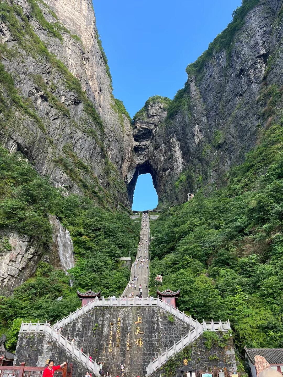 乘车赴【天门山国家森林公园】,乘高山客运索道(长7.5公里),走玻璃栈道,远观鬼谷洞;拜求儿洞;游天界佛国天门山寺;