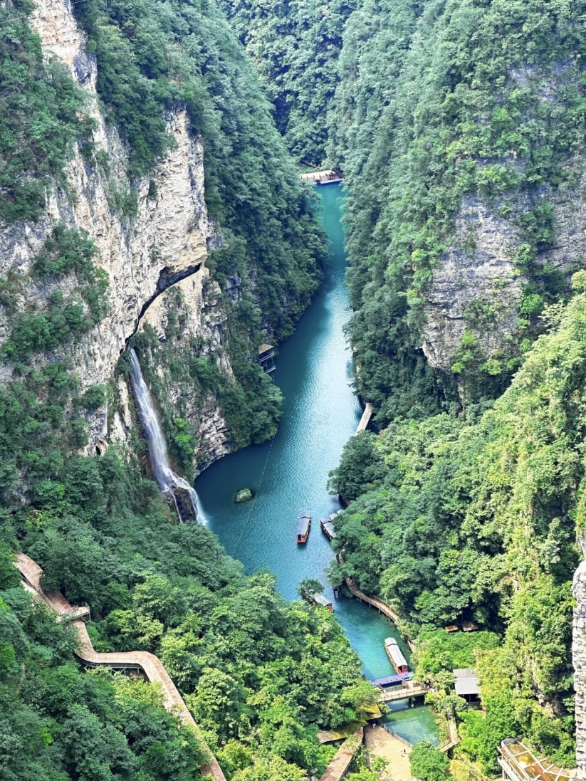 下午游览国家 AAAA 景区有“小九寨沟”之称的—【张家界大峡谷景区+玻璃桥】,位于张家界市慈利县三官寺乡,紧邻世界自然遗产、世界地质公园张家界武陵源风景名胜区。主要景点:一线天、天梯栈道、三叠游道平台、吴王坡、石壁裂缝、千年古藤、神泉峡等。大峡谷中的飞瀑神泉比比皆是,一路游览下来,让人目不暇接。峡谷里植被繁茂,空气清新,凉爽舒适,溪水上弥漫着一层薄雾,宛如来到世外桃源,让人烦恼顿消。