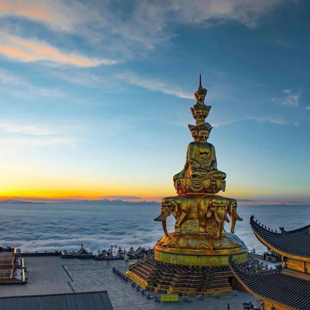 早餐后,前往峨眉山。【峨眉山-金顶】乘坐观光车(费用90元自理,上行索道80/下行索道40需自理)至雷洞坪,徒步至接引殿。峨眉金顶是以一尊48米高的十方普贤铜像为中心,由耀日的金殿、雄浑的铜殿、灼灼的银殿和洁白的朝圣大道组成的新金顶。金顶为峨眉山游程的最高峰,其海拔