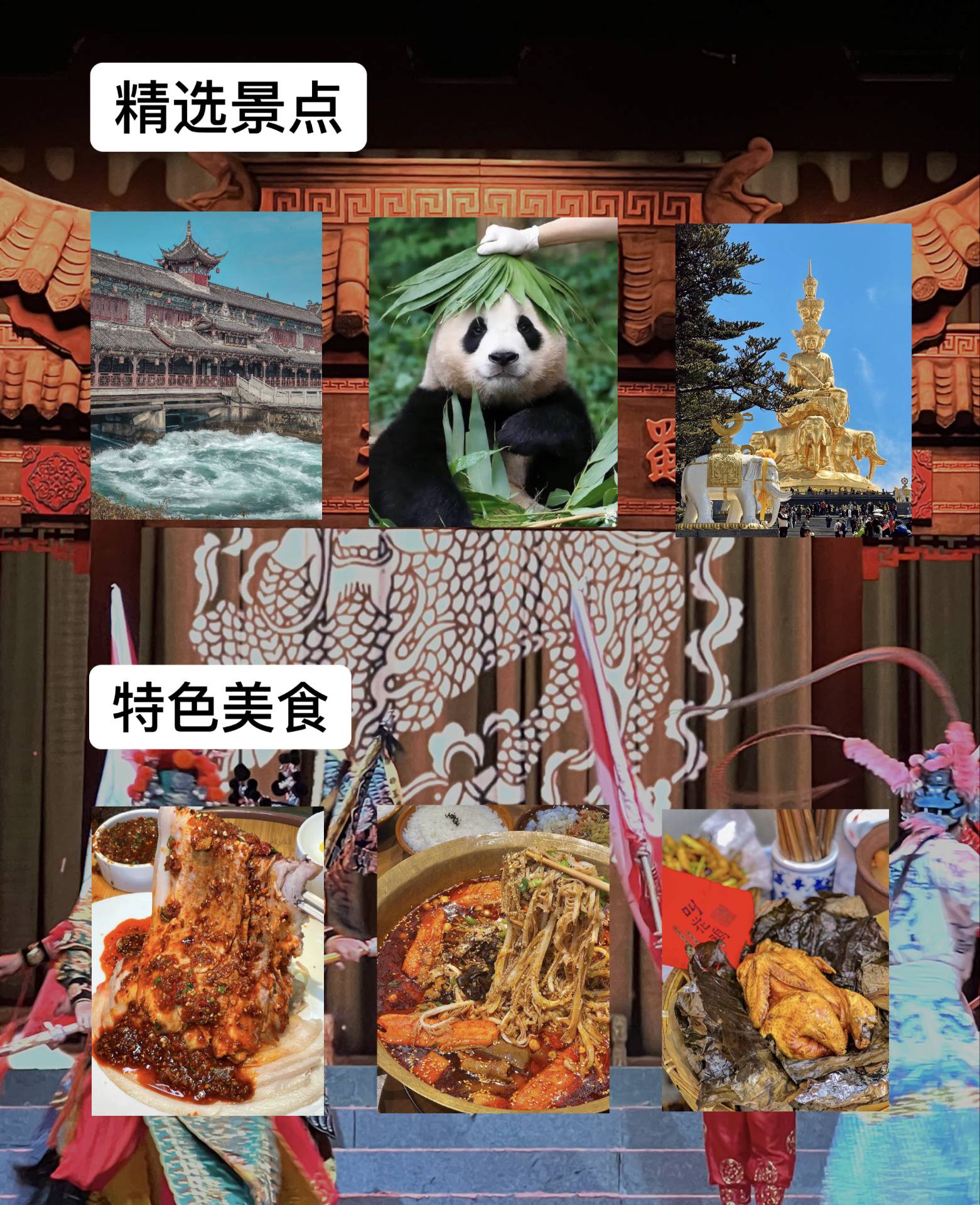 晚上【川剧变脸晚会】一边品位四川火锅,一边观看晚会表演, 变脸,滚灯,武术三大流派之一的峨眉武术等等节目。让您全方位领略无与伦比的民间绝技,真切感受古蜀文化的博大精深(此项目为赠送项目,不参加不退费)