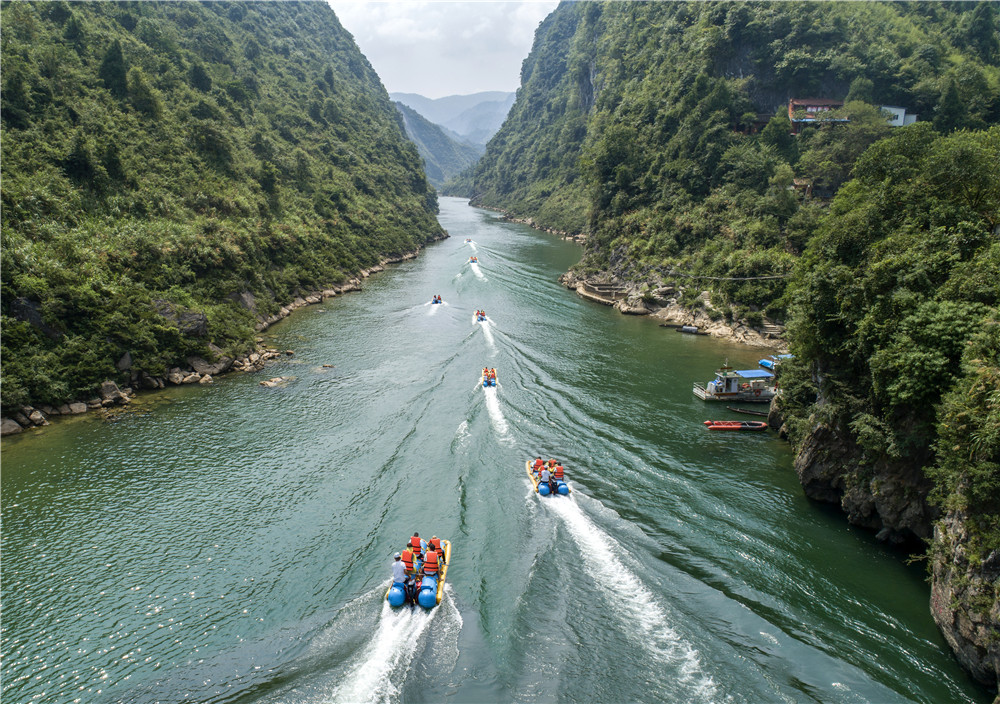 然后游玩【茅岩河漂流】项目(平湖游和漂流为赠送项目,若因天气原因无法游玩漂流或自身原因不参加,费用不退),目前已成为中国最大的和最安全的旅游漂流项目,是张家界“山、水、洞”旅游精品项目中最富刺激的项目。与浪共舞,一漂难忘,驾橡皮舟沿茅岩河漂流而下,漂流水程20公里,落差66米,有惊无险的河滩共55个。