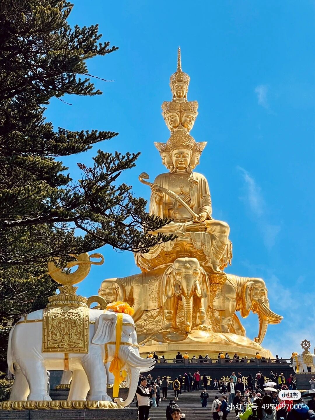 早餐后,前往峨眉山。【峨眉山-金顶】乘坐观光车(费用90元自理,上行索道80/下行索道40需自理)至雷洞坪,徒步至接引殿。峨眉金顶是以一尊48米高的十方普贤铜像为中心,由耀日的金殿、雄浑的铜殿、灼灼的银殿和洁白的朝圣大道组成的新金顶。金顶为峨眉山游程的最高峰,其海拔为3077米。顶上是个小平原,原有铜殿一座,在太阳的照射下,光彩夺目,故而得名金顶。登上金顶,人们顿觉万象排空,气势磅礴,惊叹天地之奇妙。在峨眉山金顶,还可能欣赏峨眉的四大奇景:日出、云海、佛光、圣灯。