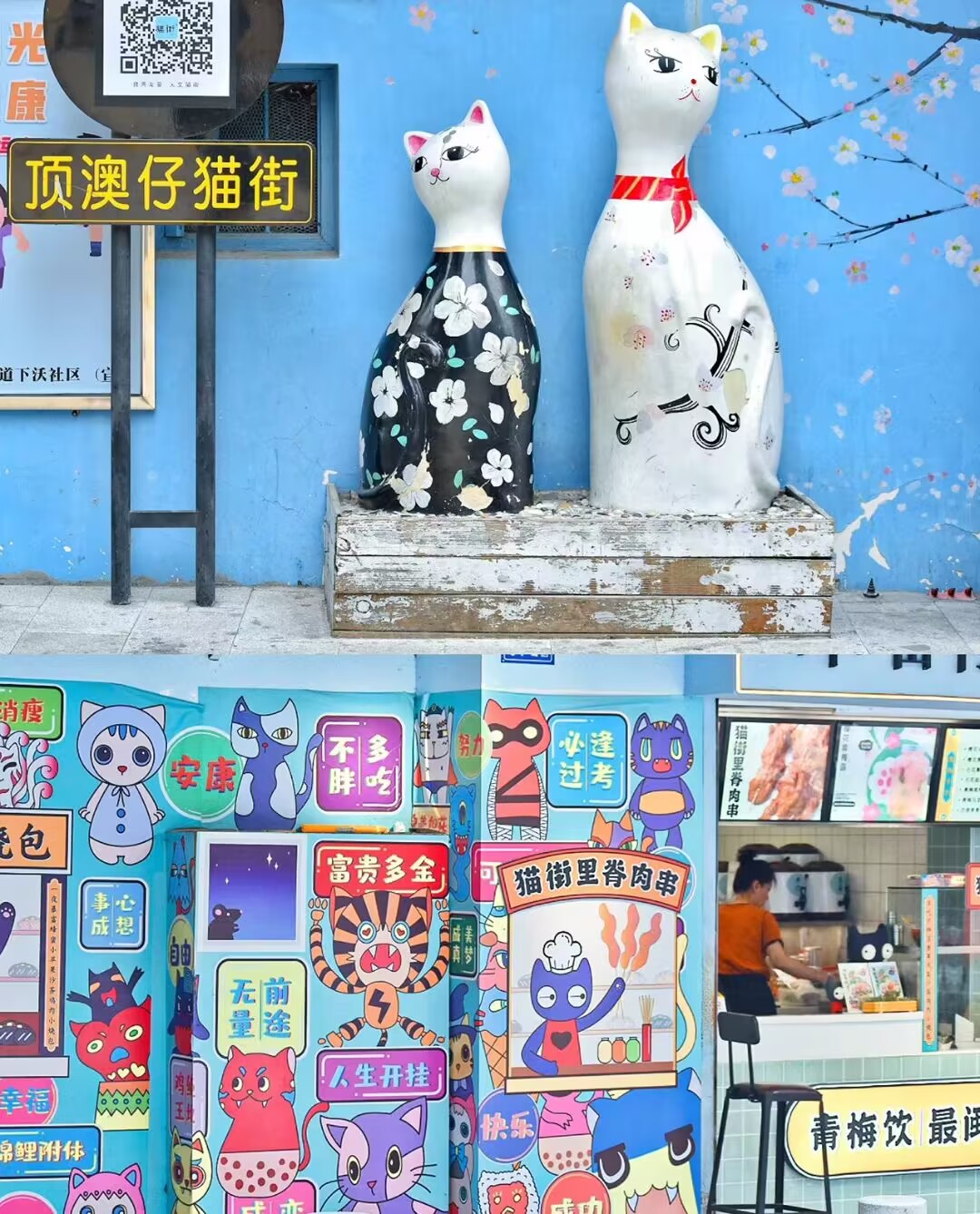 外观著名学府【厦门大学】前往【顶澳仔猫街】(游览1小时)被赋予了许多猫的元素,随处看到在商业街的墙上、电线杆甚至是小吃店面门口或窗台,都被粉刷上五颜六色的涂鸦,均是各品种的猫的卡通形象,是一条有创意并且很有特色的街巷。在这里宣传猫文化,传播有关猫咪的各种知识,包括种类、习性等,可以感受到很多关于猫咪的知识。而且这里还有很多当地的特色美食和咖啡馆,是一个游玩的好地方。